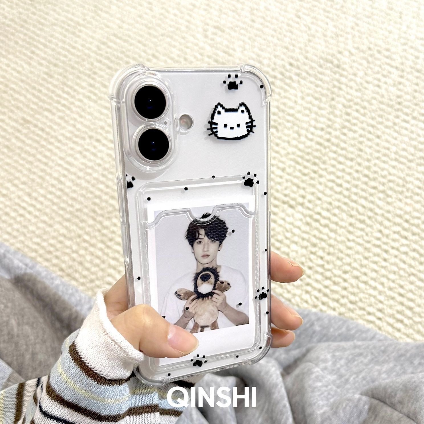 Pixel Kitten Card Holder Can Hold Polaroid Photos, Suitable for Apple 17/16 Pro Max Phone Case, 15/13 Soft Rubber, 11 Full Coverage, X/Xs Anti-Drop Airbag, Star-Chasing