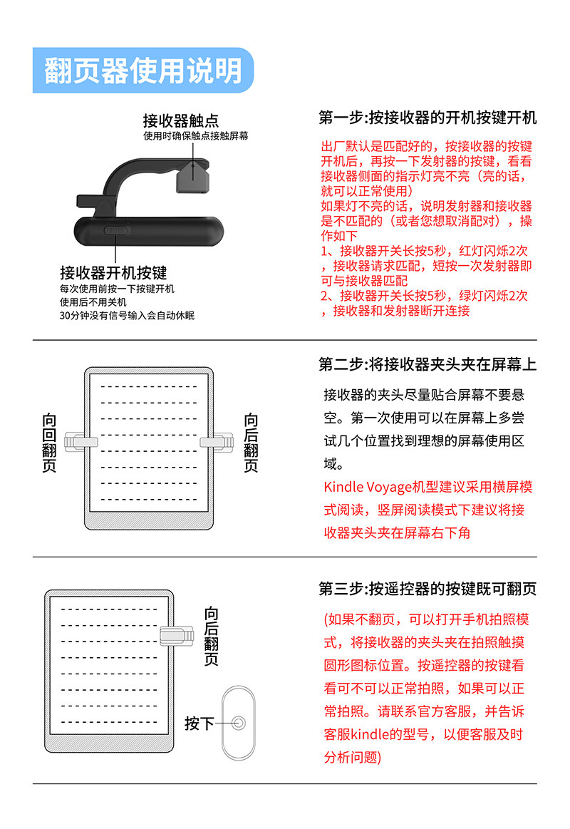 Kindle E-Book Page Turner Bluetooth Remote Control E-Ink Screen Reading E-Book Tablet E-Paper Book Page Turning Lazy Reading Novel Remote Control Mobile Phone Remote Control E-Book Page Turner