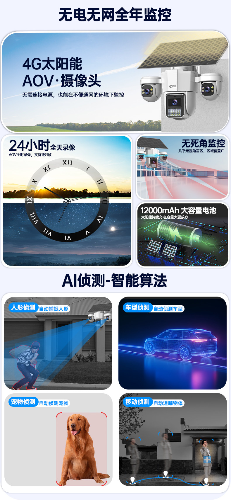 | Color Classification | 【4G Version|Free 99-Year Traffic] Detection Event Recording + Three-Light Model,【4G Aov Version|Free 99-Year Traffic】24-Hour Continuous Recording + Three-Light Model + Ai Detection,【4G Aov Version|Free 99-Year Traffic] 24-Hour Continuous Recording + Three-Light Model + Ai Detection + Dual Boards,【4G Aov Version|【99-Year Data Plan Included】24/7 Continuous Recording + Triple-Lens Independent Rotation + Ai Detection,【4G Aov Version|Free 99-Year Traffic] 24-Hour Continuous Recording + Three-Lens Independent Rotation + Ai Detection + Dual Boards |