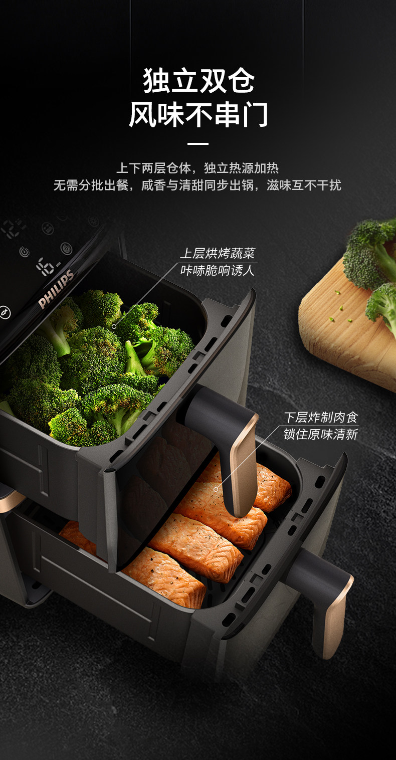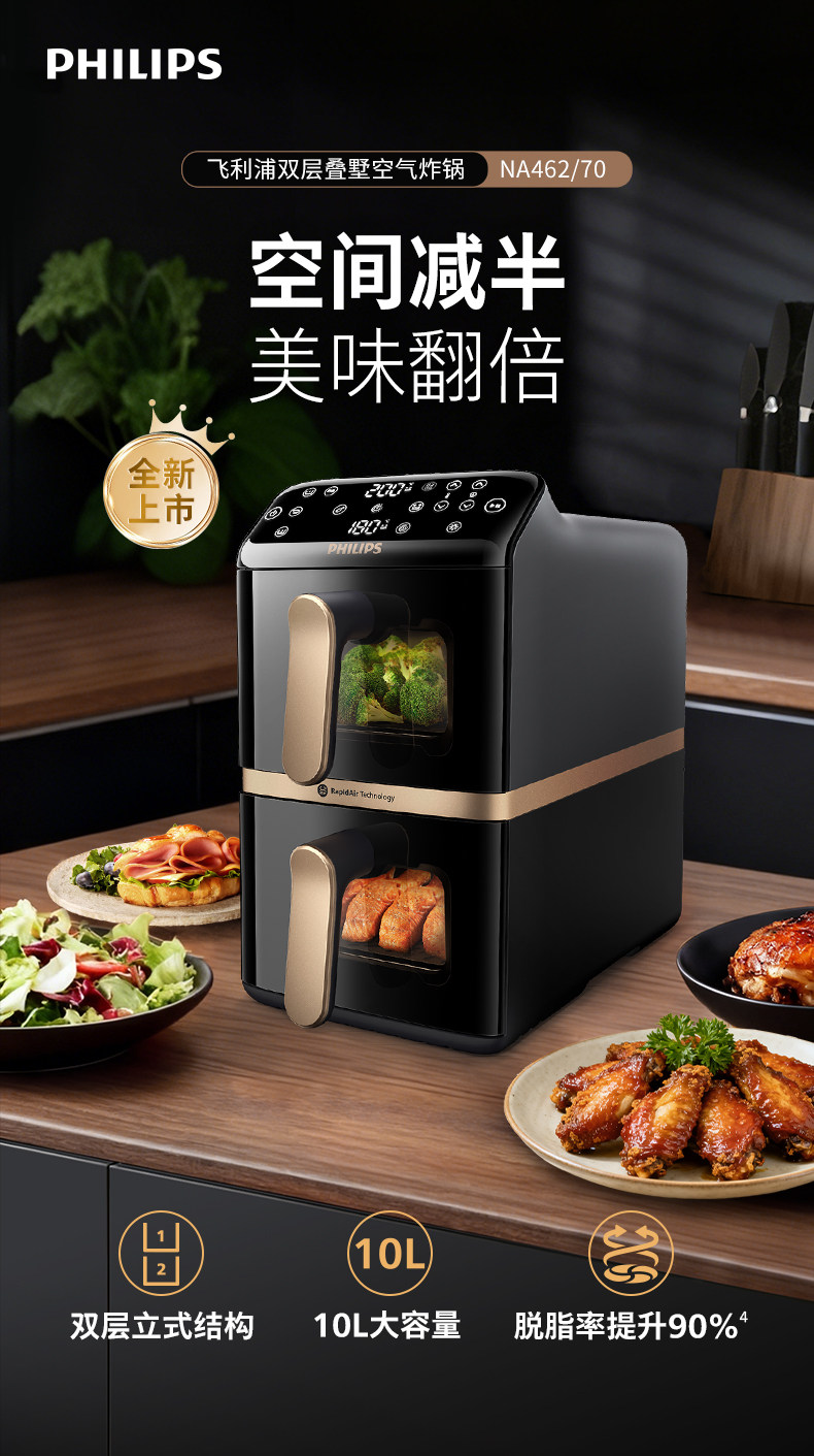 Philips Air Fryer for Home Use 2025 New Model, No Need to Turn Over, Multifunctional Dual-Chamber Electric Fryer, Large Capacity Na462