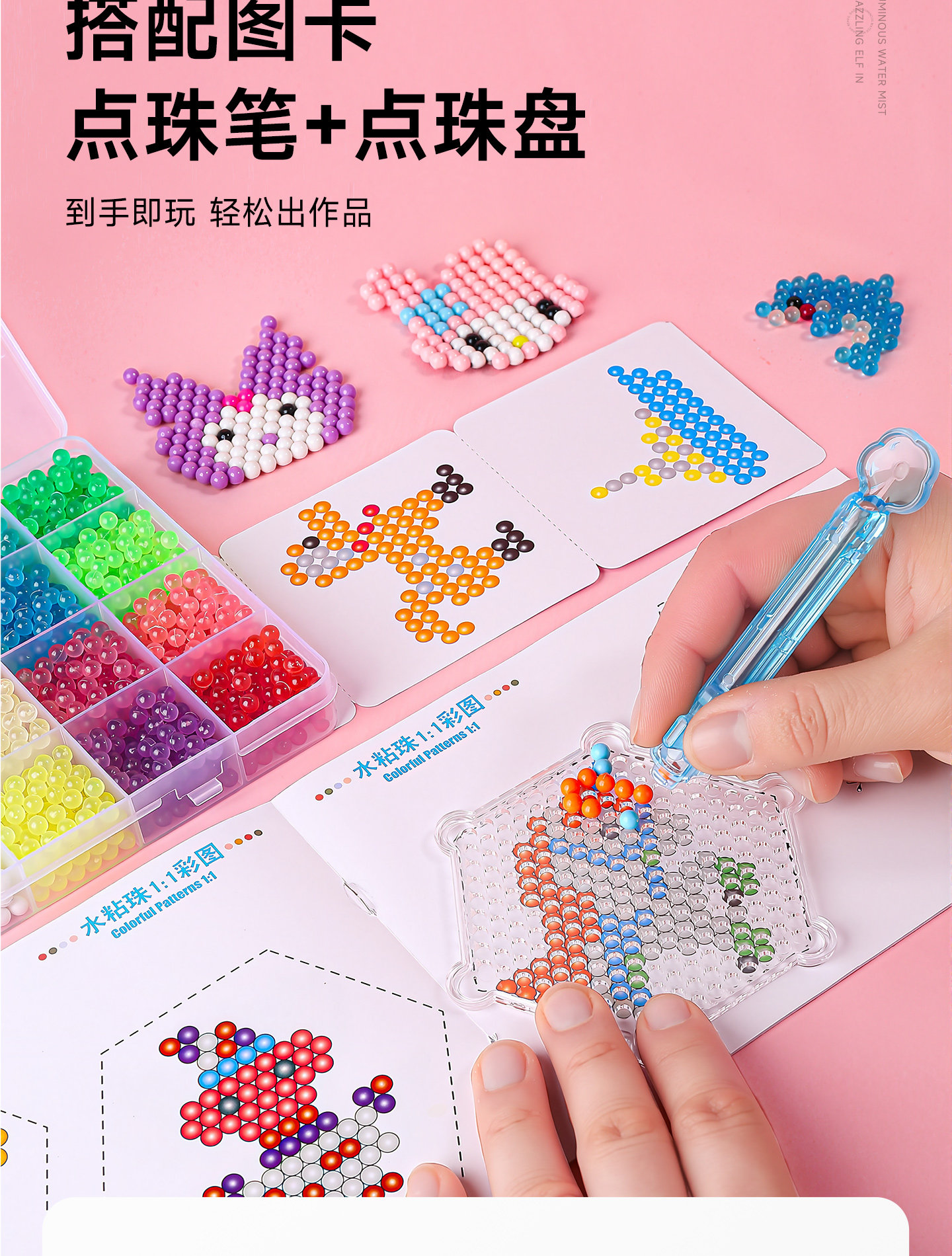 Glow-In-The-Dark Water Mist Magic Bead Material Kit, Magical Sand Painting, Scratch Art Paper, Glue Painting, Girl's Bean Puzzle, Children's Handmade DIY Toys