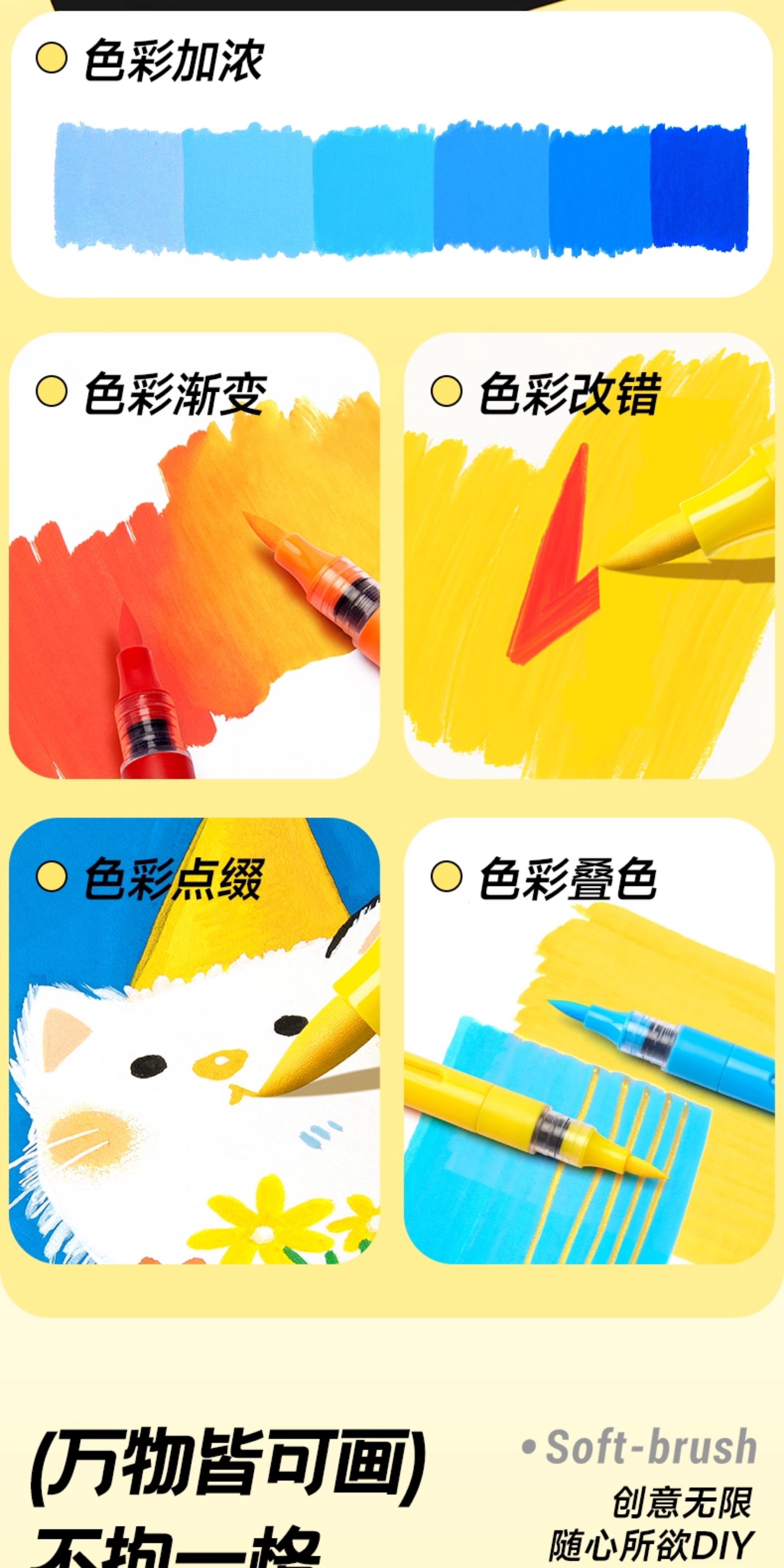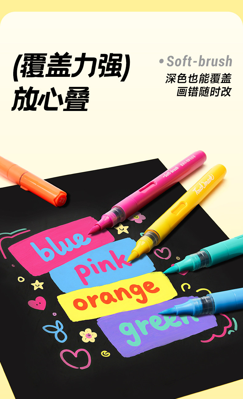 Taichi Touchmark Xingyue Soft Tip Liquid Acrylic Marker Pen for Elementary Students, 120 Colors Art Watercolor Pen, Washable Color Pen for Children, Anime Hand-Drawn Color Pen for Middle School Students