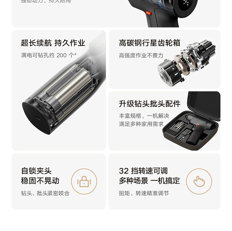 Mijia Brushless Electric Drill 2 for Home Use, Small Hole Opener, Long Battery Life, Stable, Multi-Speed, Rechargeable, with Lighting