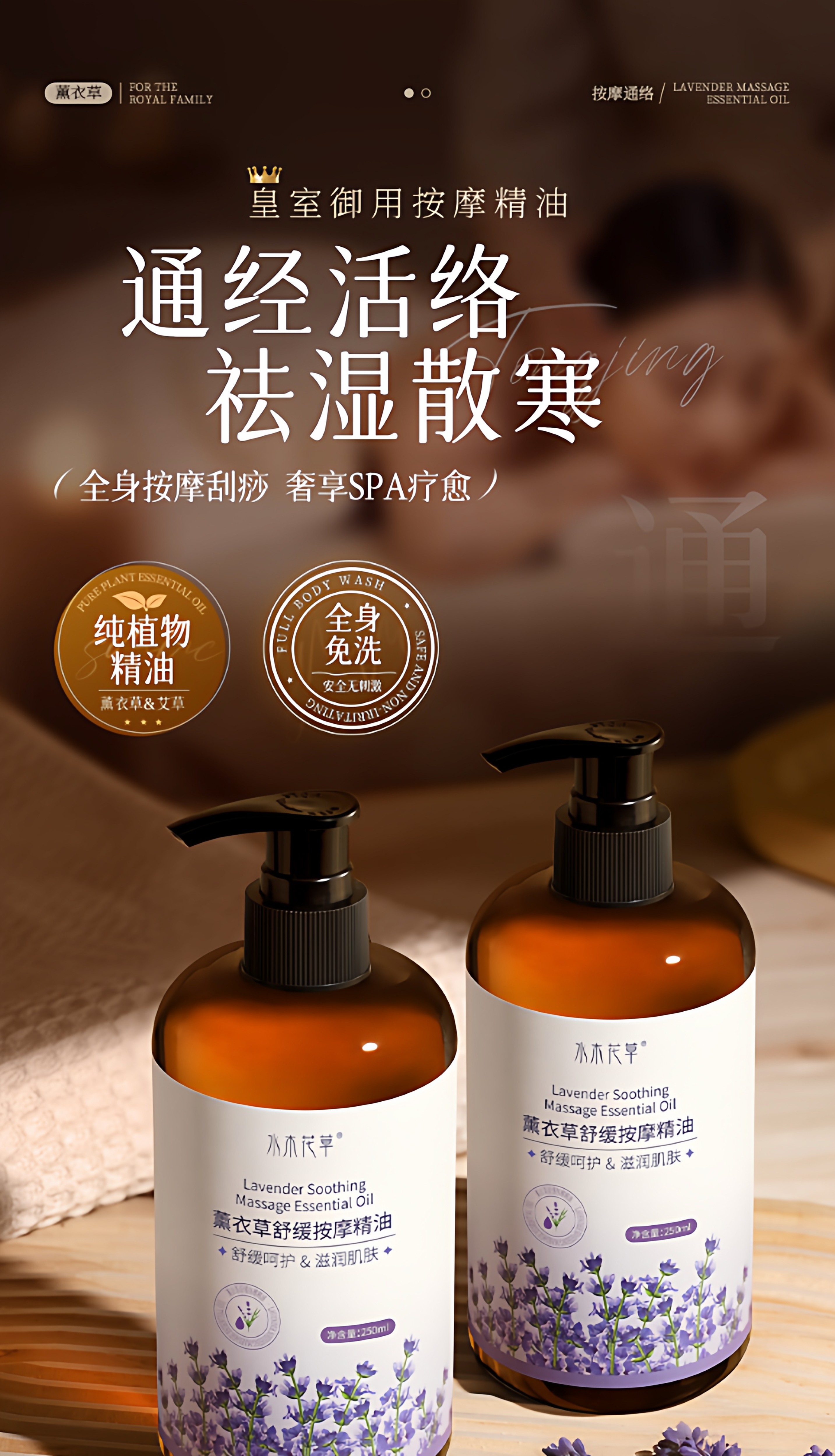 Lavender Massage Oil for Full Body Meridian Activation, Warming Massage Oil, No-Rinse, Back Massage, Gua Sha Official official store