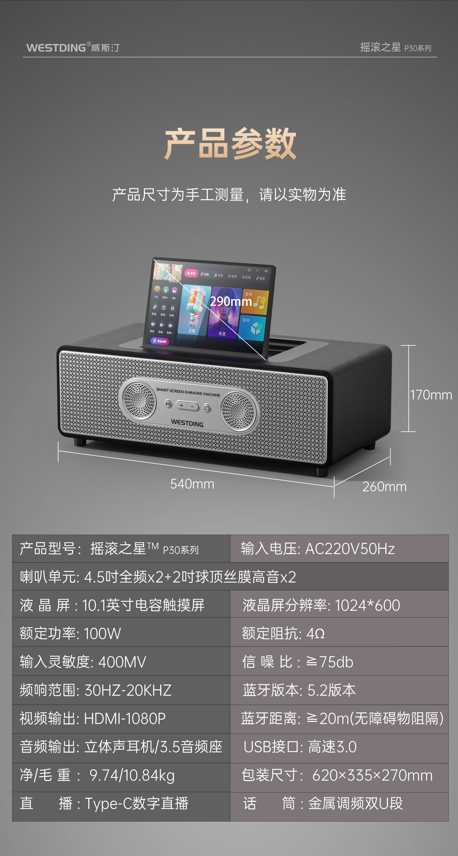 Westin P30 Home Karaoke Audio Set, Home Karaoke All-In-One Machine, Living Room Singing Equipment, New Model Karaoke Machine