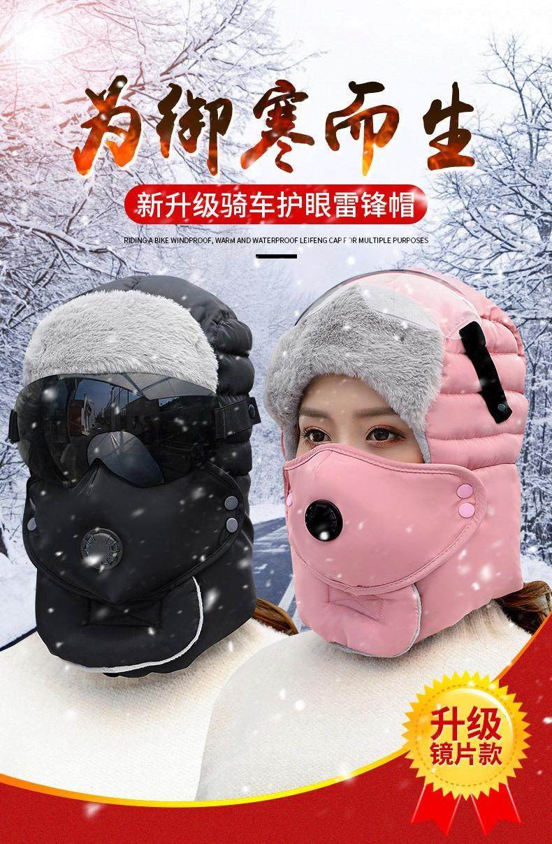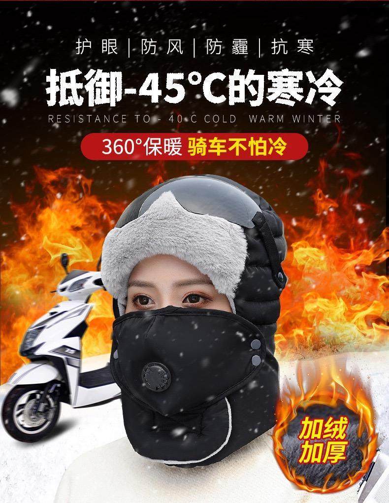 Winter Lei Feng Hat for Men and Women Riding Electric Bikes, Fleece-Lined Face Mask, Thickened for Winter, Cold-Proof, Warm, Ear-Protecting, Hooded Cotton Hat