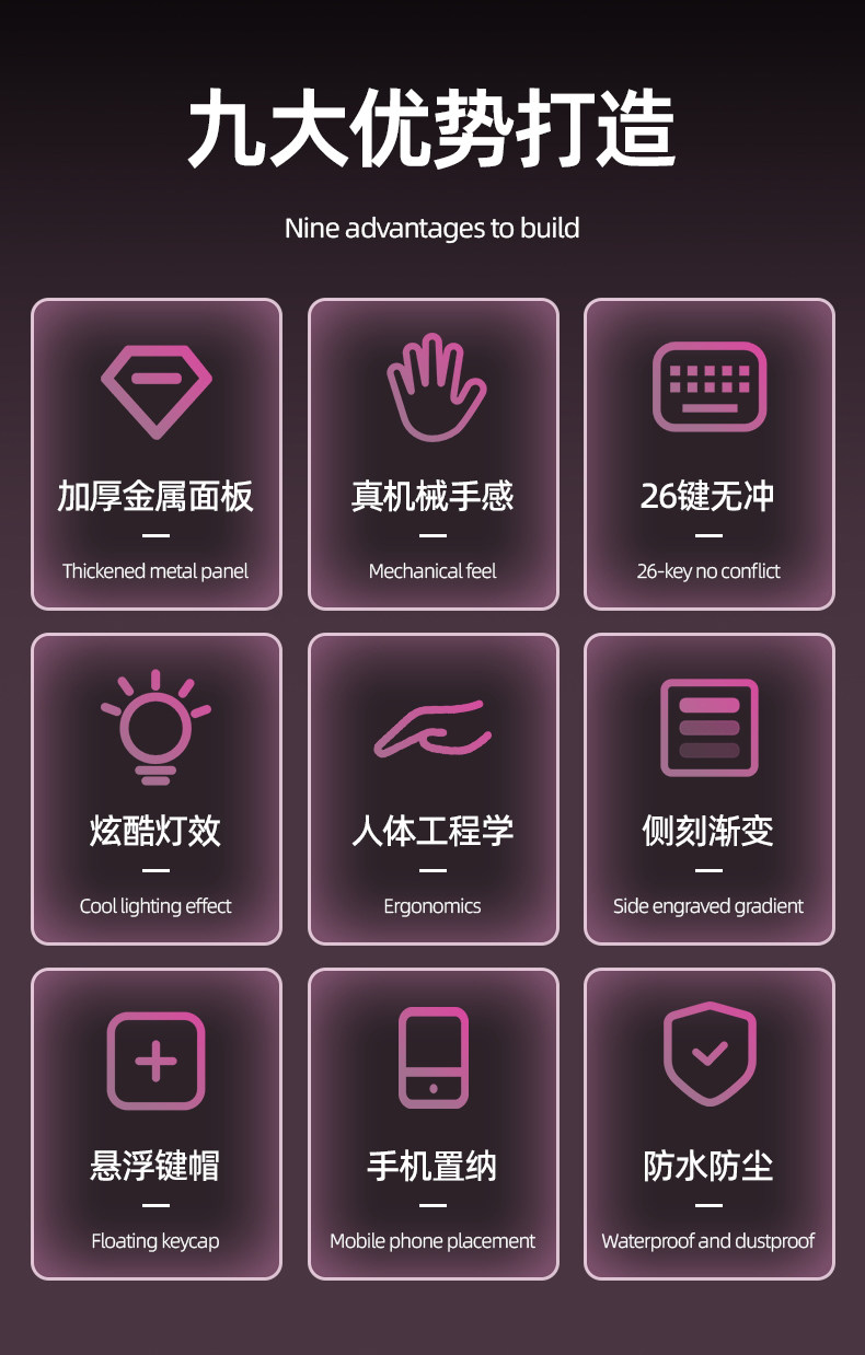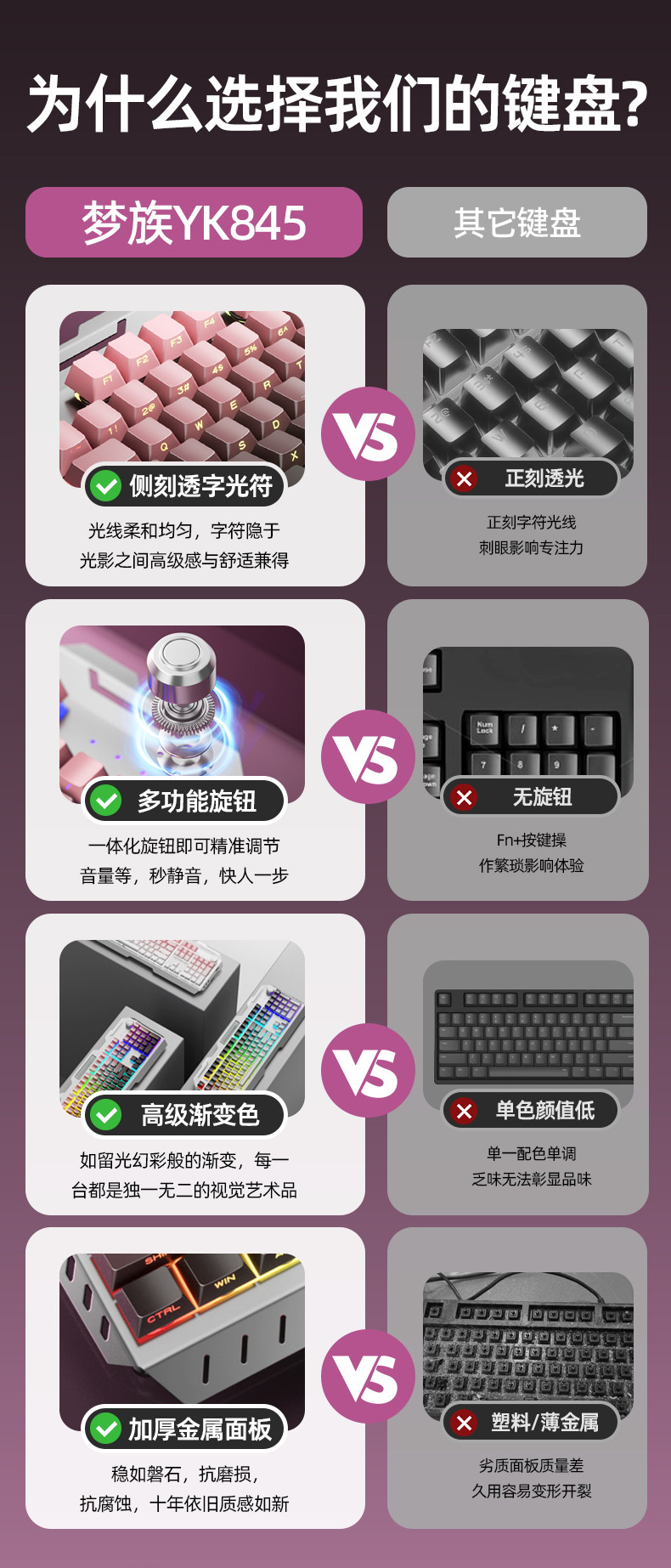 | Color Classification | [Single Keyboard] Metal Engraving-Blackberry Pink✅Silent Upgrade✅Pbt Keycaps✅The Feel Is Upgraded by 120%],[Keyboard and Mouse Set] Metal Engraving-Blackberry Pink✅Silent Upgrade✅Pbt Keycaps✅The Feel Is Upgraded by 120%],[Single Keyboard] Metal Engraving - Dust Black✅Silent Upgrade✅Pbt Keycaps✅The Feel Is Upgraded by 120%],[Keyboard and Mouse Set] Metal Engraving-Micropowder Black✅Silent Upgrade✅Pbt Keycaps✅The Feel Is Upgraded by 120%],[Single Keyboard] Metal Side Engraving-Blackberry Pink✅Silent Upgrade✅Pbt Keycaps✅The Feel Is Upgraded by 120%],[Keyboard and Mouse Set] Metal Side Engraving-Blackberry Pink✅Silent Upgrade✅Pbt Keycaps✅The Feel Is Upgraded by 120%],[Single Keyboard] Metal Side Engraving - Dust Black✅Silent Upgrade✅Pbt Keycaps✅The Feel Is Upgraded by 120%],[Keyboard and Mouse Set] Metal Side Engraving - Dust Black✅Silent Upgrade✅Pbt Keycaps✅The Feel Is Upgraded by 120%],[Single Keyboard] Metal Side Engraving-Mist Peach Powder✅Silent Upgrade✅Pbt Keycaps✅The Feel Is Upgraded by 120%],[Keyboard and Mouse Set] Metal Side Engraving-Mist Peach Powder✅Silent Upgrade✅Pbt Keycaps✅The Feel Is Upgraded by 120%],[Single Keyboard] Metallic Gray-Mixed Light✅Silent Upgrade✅Real Mechanical Feel],[Keyboard and Mouse Set] Metallic Gray-Mixed Light ✅ Silent Upgrade ✅ Real Mechanical Feel],[Single Keyboard] Metallic Silver-Blu-Ray✅Silent Upgrade✅Real Mechanical Feel],[Keyboard and Mouse Set] Metallic Silver-Blu-Ray✅Silent Upgrade✅Real Mechanical Feel] |