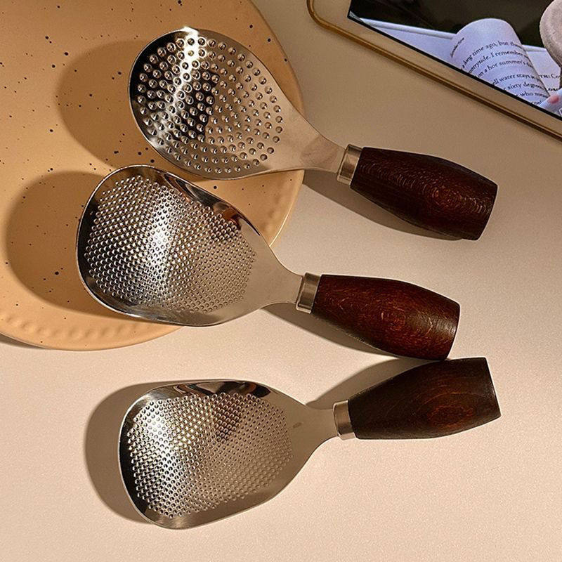 Solid Wood Handle Upright Rice Spoon for Home Use, Suitable for Rice Cookers, High-Temperature Resistant, Stainless Steel, Non-Stick Rice Spatula