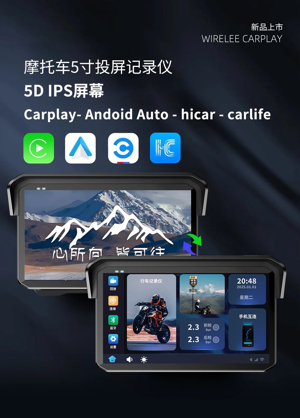Motorcycle Navigation Screen Carplay Wireless Interconnection Navigator Smart Car Device Huawei Hicar Baidu Carlif