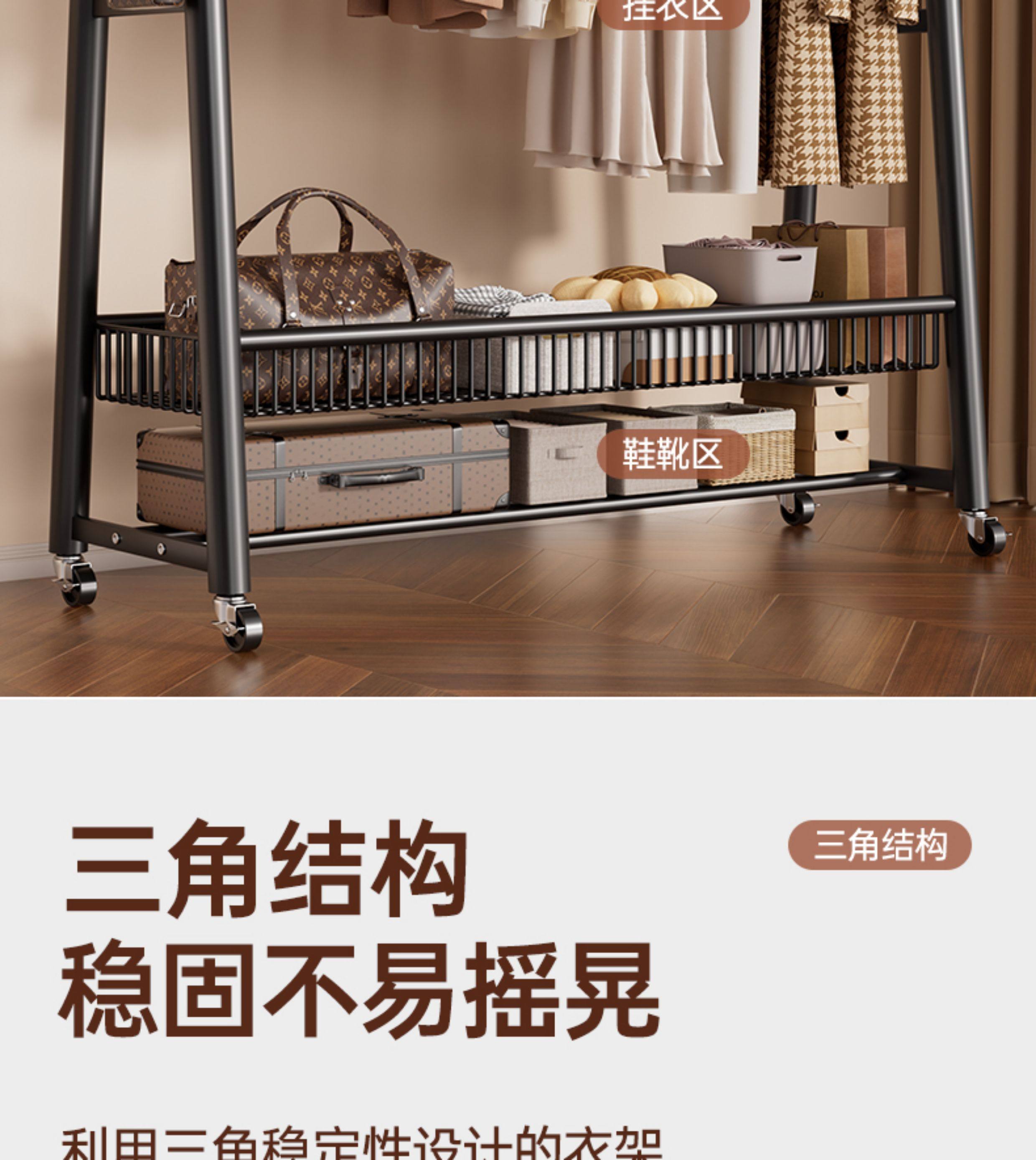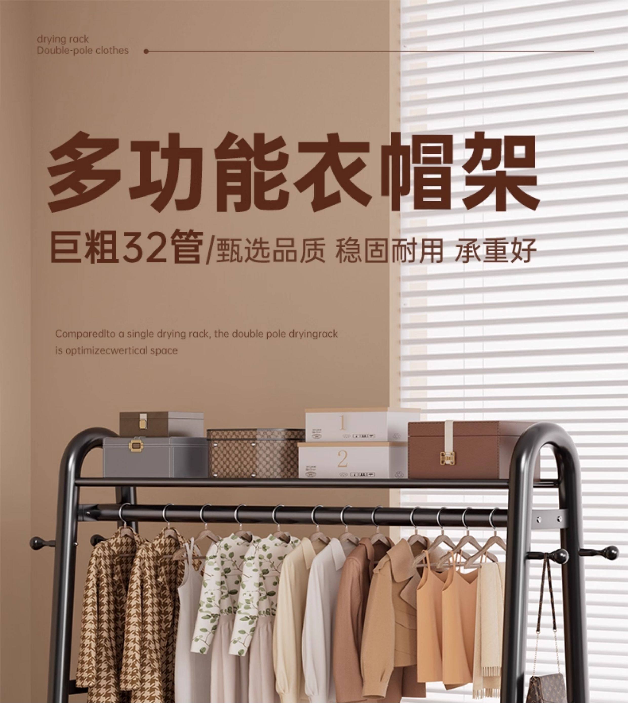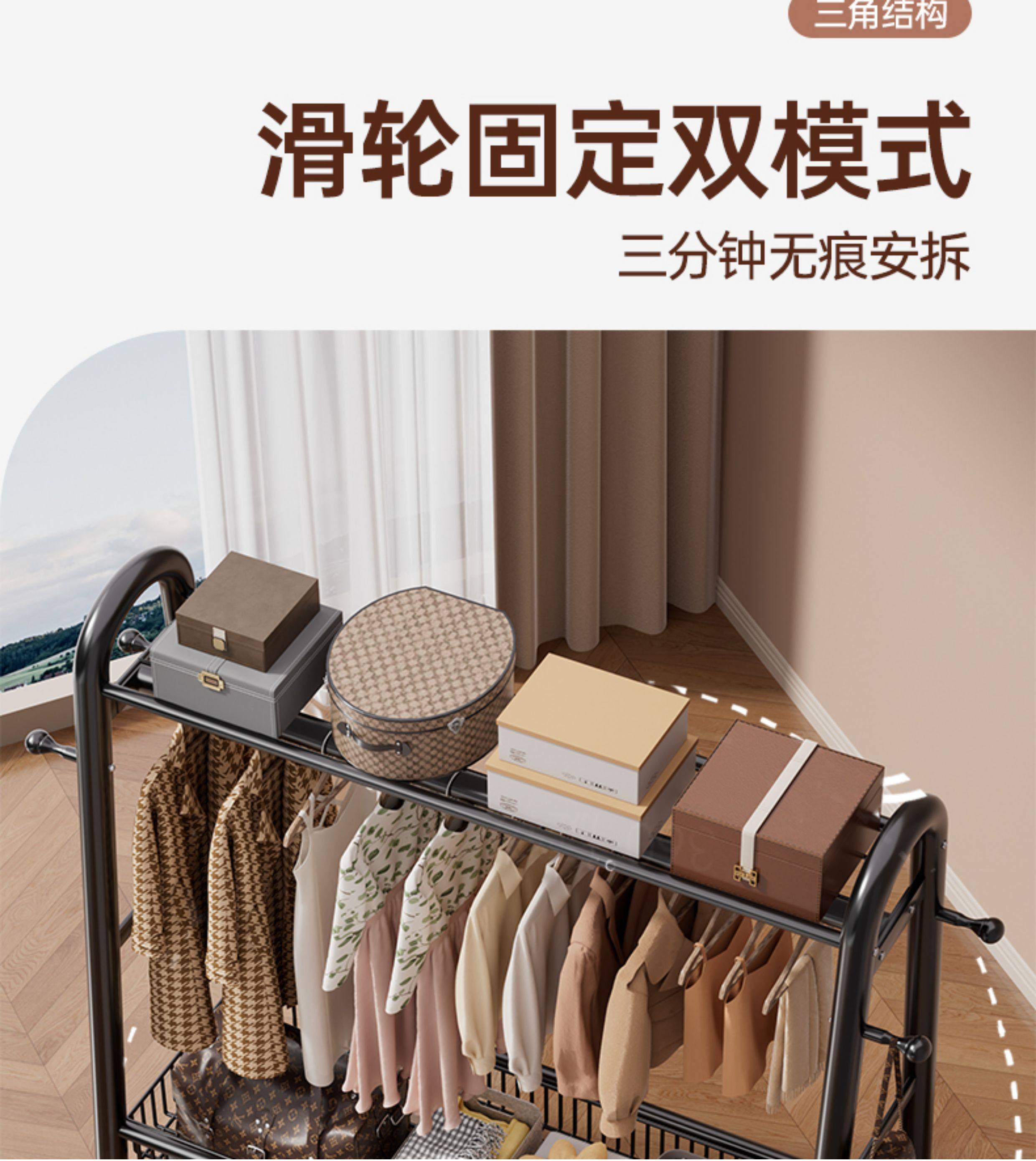 German Coat Rack Floor-Standing Bedroom Home Indoor Movable Clothes Rack Room Clothes Storage Rack Storage Rack