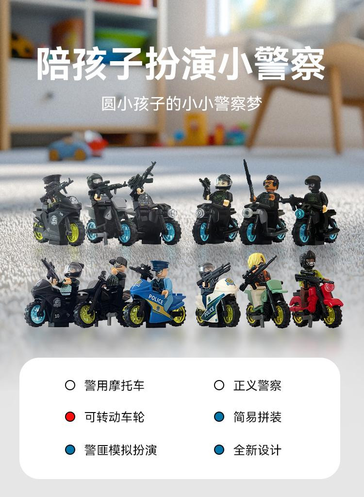 Anti-Terrorist Special Forces Team Police Swat Motorcycle Building Blocks Small Particles High-Quality Children's Educational Assembly Small Particles for Boys