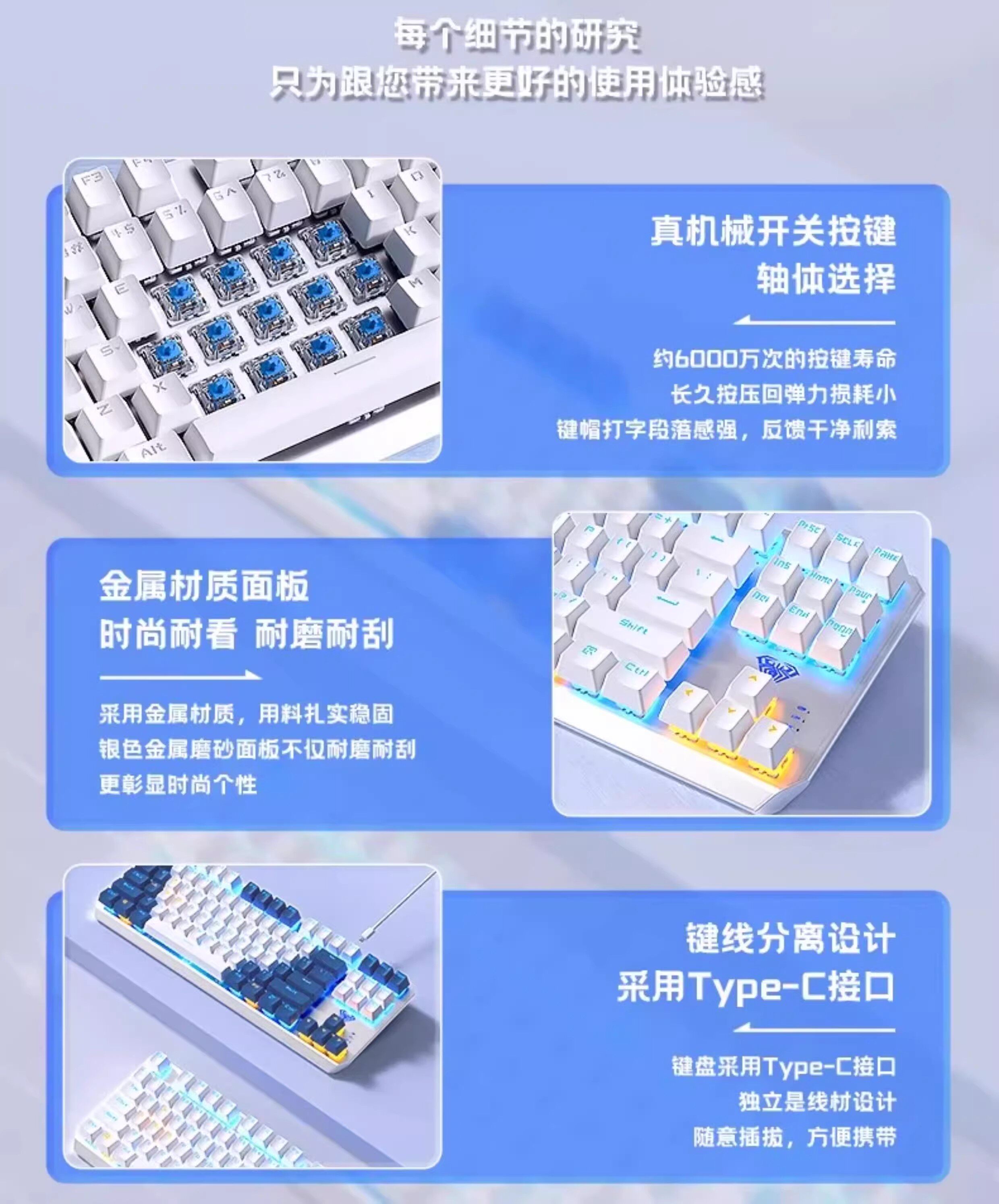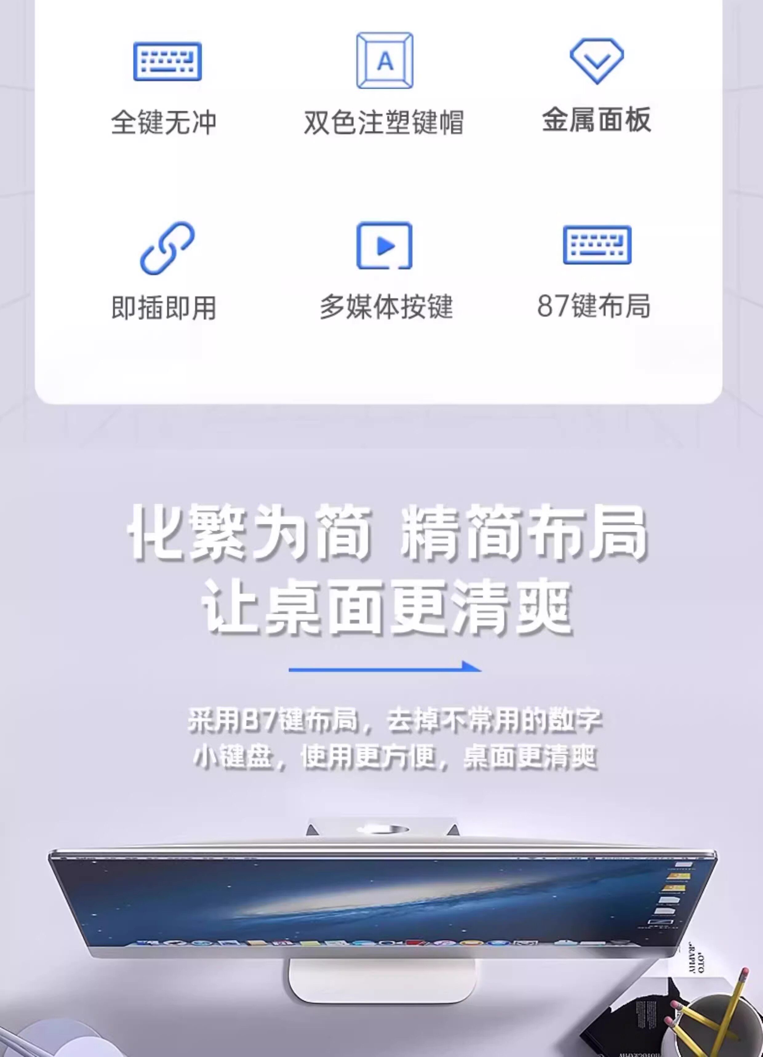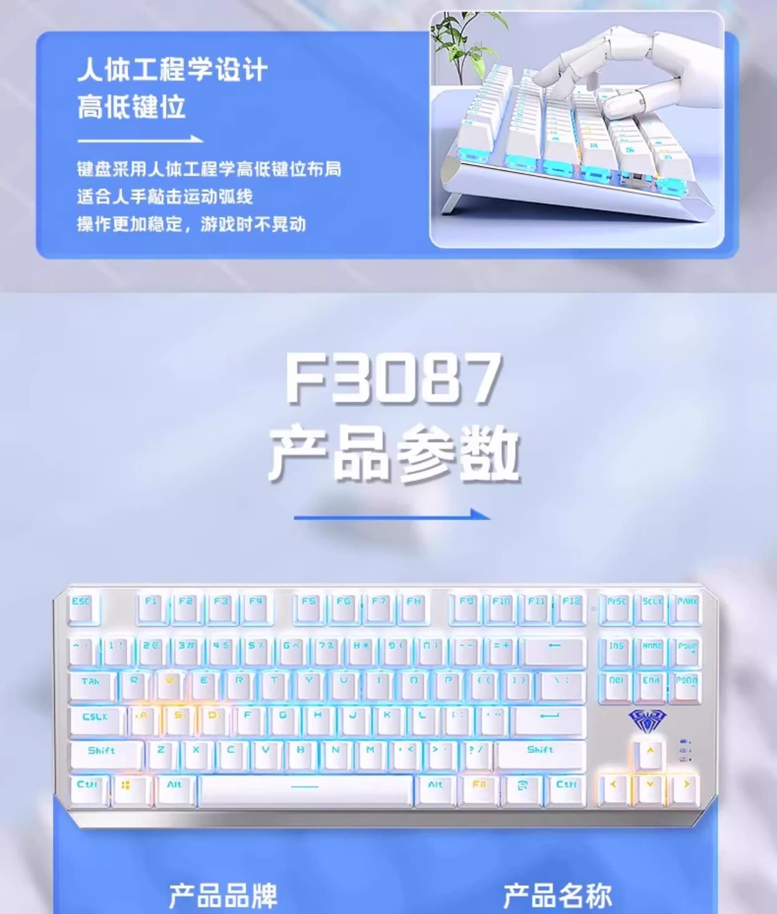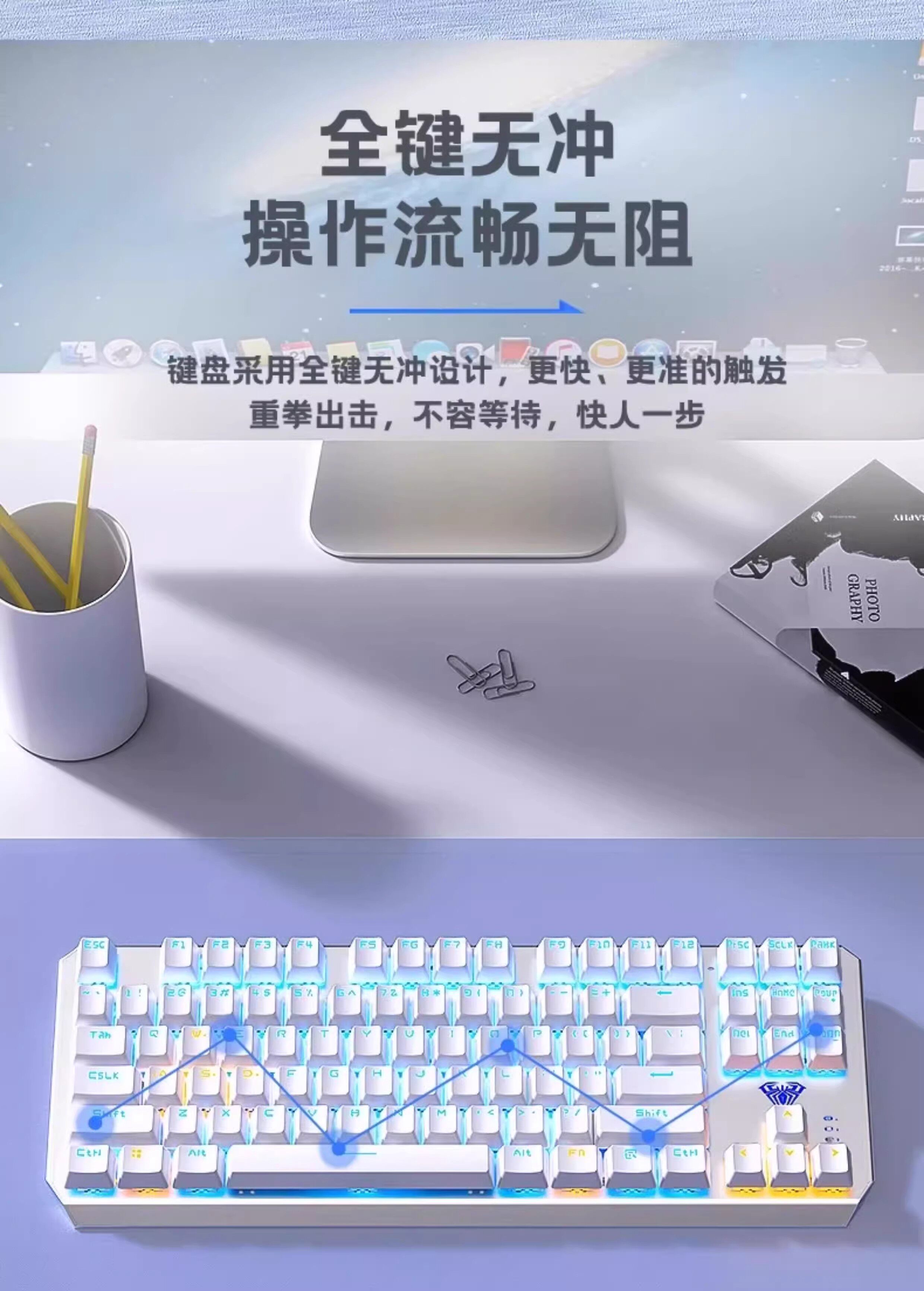 | Color Classification | [3587 Silver White 87 Keys] Keyboard,[Silver White 87 Keys] Keyboard,[Silver White 87 Keys] Keyboard + Mouse - Free Table Mat,[Blue and White 87 Keys] Keyboard + Mouse - Free Table Mat,[Pink and White 87 Keys] Keyboard + Mouse - Free Table Mat,[Purple and White 87 Keys] Keyboard + Mouse - Free Table Mat,[Gray and White 87 Keys] Keyboard + Mouse - Free Table Mat,[Black and White 87 Keys] Keyboard + Mouse - Free Table Mat,[Orange and White 87 Keys] Keyboard + Mouse - Free Table Mat,[3587 Silver White 87 Keys] Keyboard + Mouse + Headphones - Free Table Mat,[Silver White 87 Keys] Keyboard + Mouse + Headphones - Free Table Mat,[Blue and White 87 Keys] Keyboard + Mouse + Headphones - Free Table Mat,[Pink and White 87 Keys] Keyboard + Mouse + Headphones - Free Table Mat,[Purple and White 87 Keys] Keyboard + Mouse + Headphones - Free Table Mat,[Gray and White 87 Keys] Keyboard + Mouse + Headphones - Free Table Mat,[Orange and White 87 Keys] Keyboard + Mouse + Headphones - Free Table Mat,[Silver White 87 Keys] Keyboard + Mouse + Speaker - Free Table Mat,[Blue and White 87 Keys] Keyboard + Mouse + Speaker - Free Table Mat,[Pink and White 87 Keys] Keyboard + Mouse + Speaker - Free Table Mat,[Purple and White 87 Keys] Keyboard + Mouse + Speaker - Free Table Mat,[Gray and White 87 Keys] Keyboard + Mouse + Speaker - Free Table Mat,[Orange and White 87 Keys] Keyboard + Mouse + Speaker - Free Table Mat |