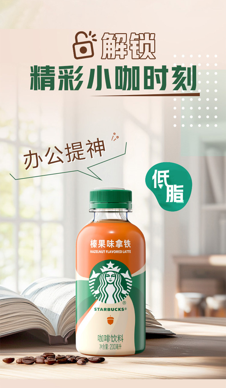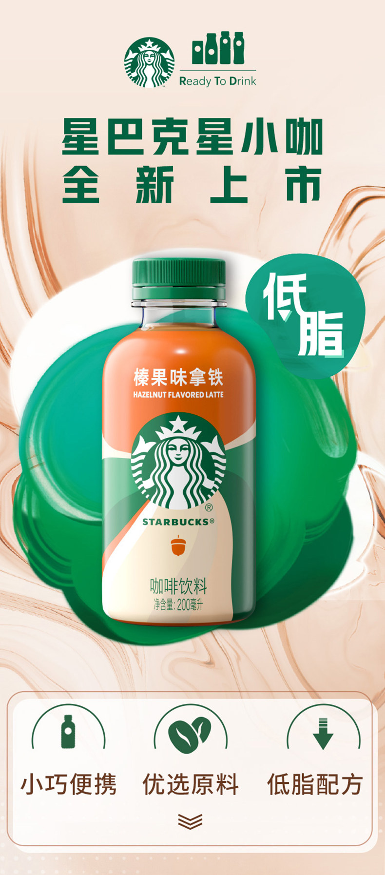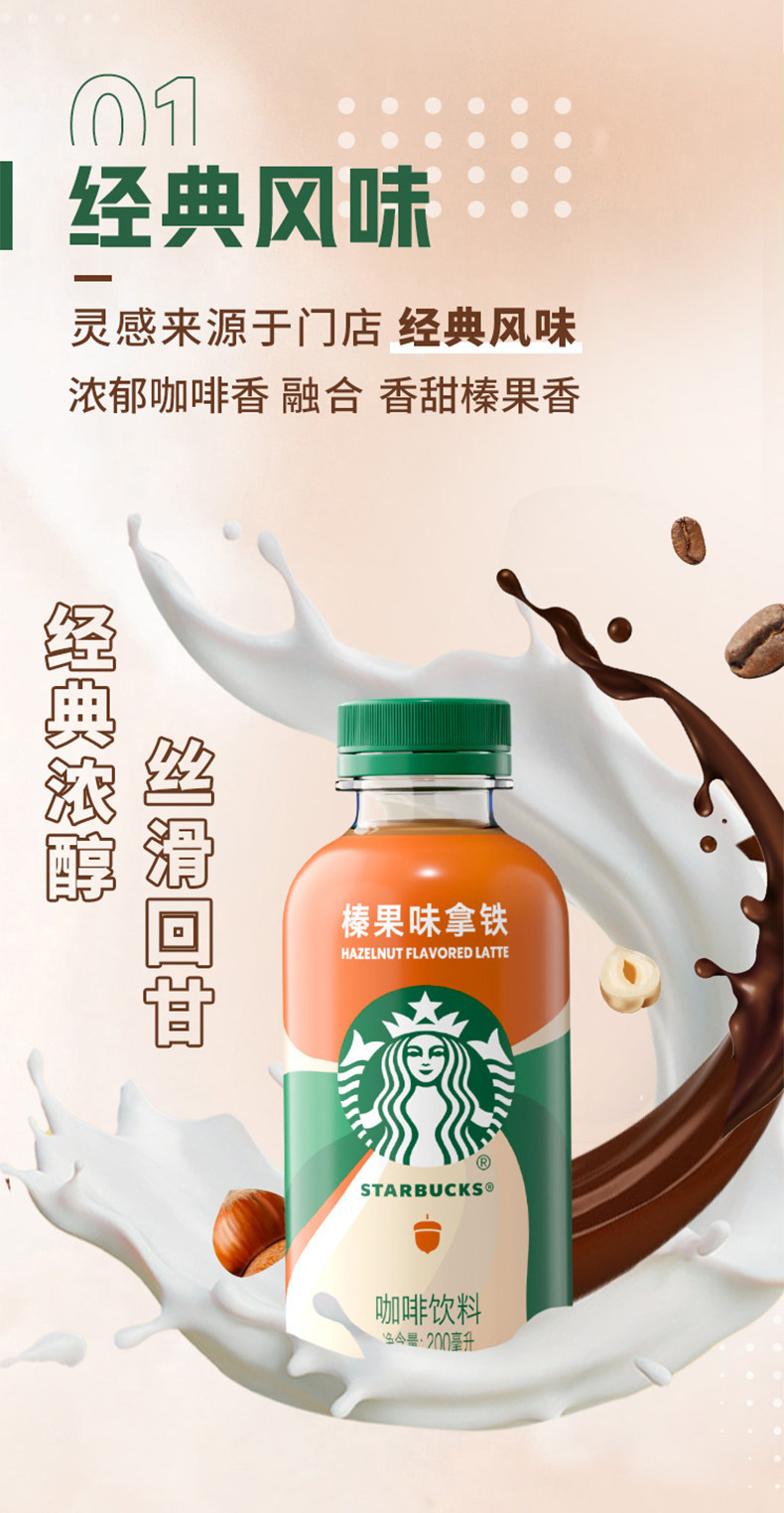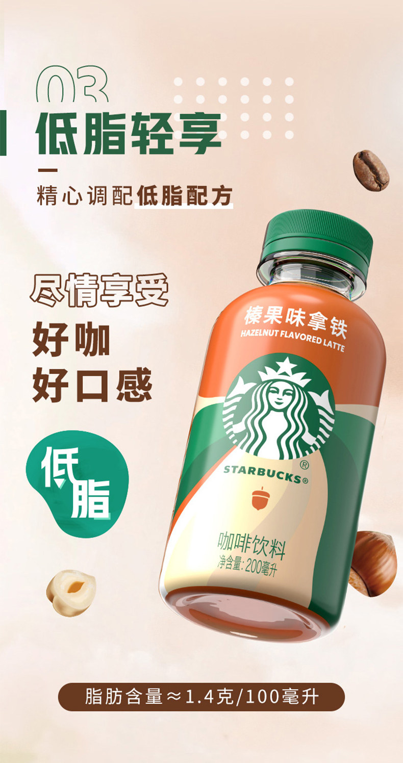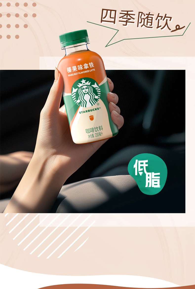 Starbucks Low-Sugar Latte Coffee Hazelnut Flavored Latte 200ml*15 Bottles Whole Box Small Bottle Portable Coffee Drink