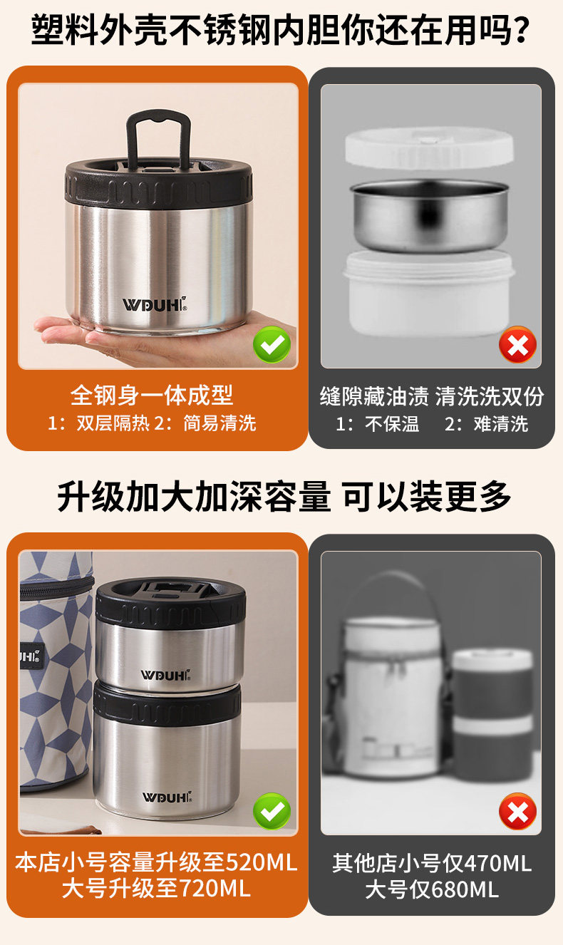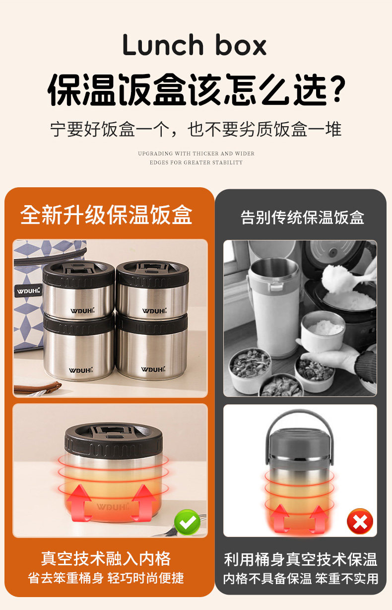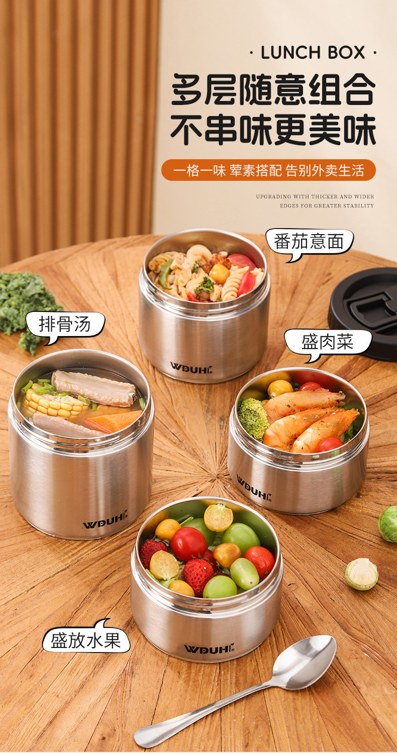 | Color Classification | â€â [Wudu Hui Brand 316 Stainless Steel] Products Support Testing by Any Institutionâ Get Ten Times the Compensation for Any Fake Productâââ,ââ [Newly Upgraded Patented Model in 2025] Double-Layer Anti-Scaldingâ€Vacuum Lightweight Insulated Lunch BoxââSelect Size Belowââ,[316 Antibacterial Fresh Lock - Premium Silver] Double Layer 1240ml (Rice/Vegetables) + Tableware + Thermal Bag,ăâ€Increased Capacity - High-Grade Silver] Double Layer 1440ml (Rice/Vegetables) + Tableware + Thermal Bag,[316 Antibacterial Fresh Lock - Premium Silver] Three Layers 1760ml (Rice/Vegetables/Soup) + Tableware + Thermal Bag,ăâ€Increased Capacity - High-Grade Silver] Three Layers 1960ml (Rice/Vegetables/Soup) + Tableware + Thermal Bag,[316 Antibacterial Fresh Lock - Premium Silver] Four Layers 2480ml (Rice/Vegetables/Soup/Fruit) + Tableware + Thermal Bag,ă †Increased Capacity - High-Grade Silver] Four Layers 2880ml (Rice/Vegetables/Soup/Fruit) + Tableware + Thermal Bag |