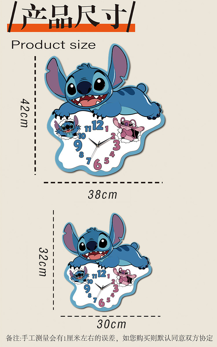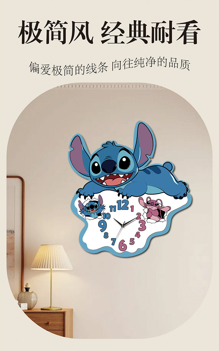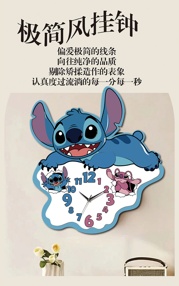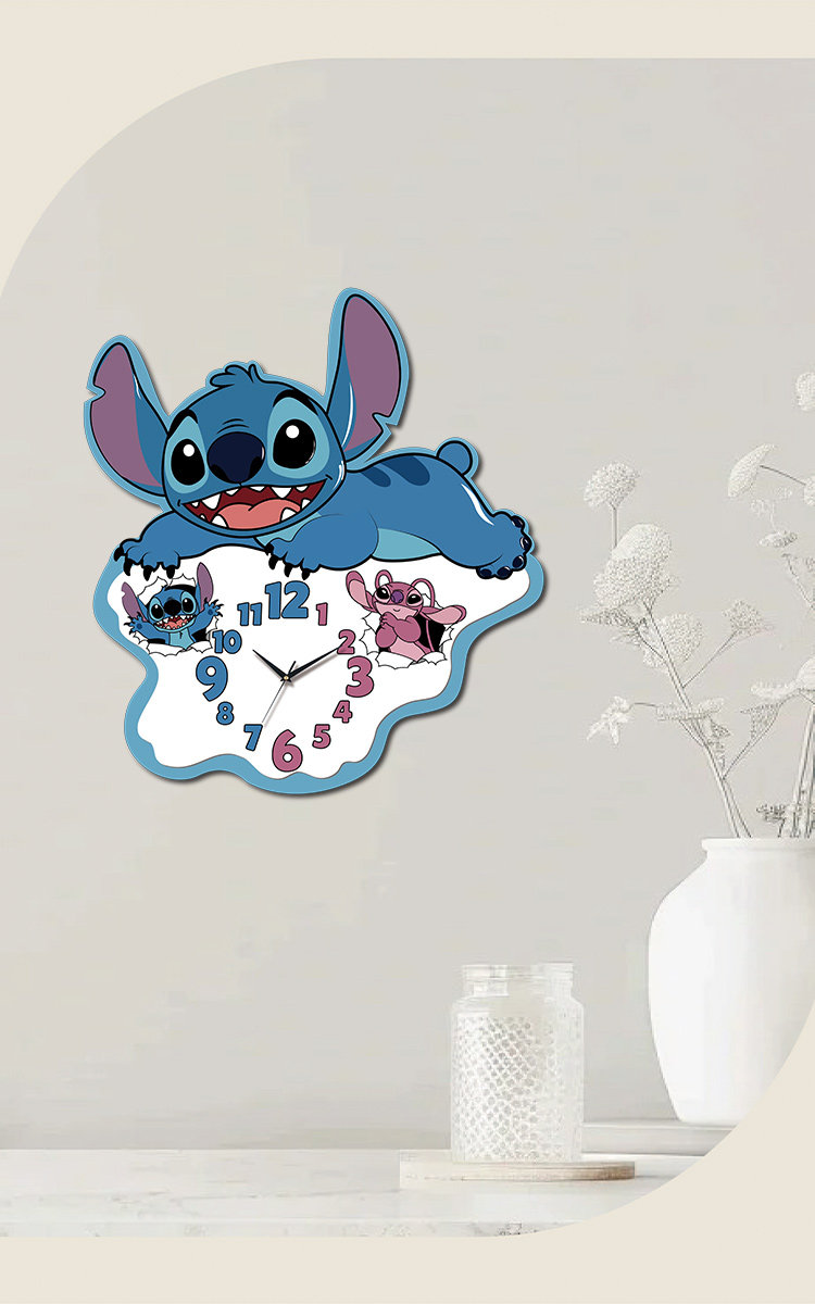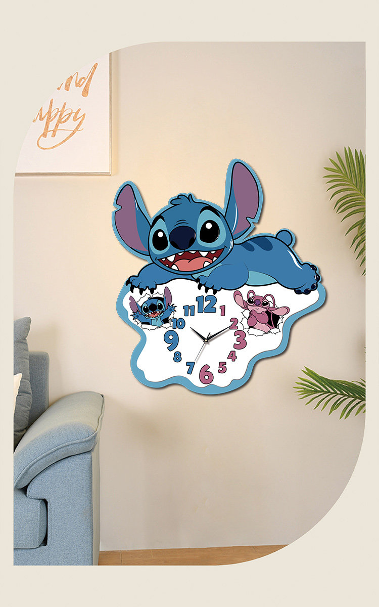 2025 New Model Stitch Wall Clock, Living Room Decoration, Creative Cartoon, Full of Cuteness, Accurate Timekeeping, Great Home Item