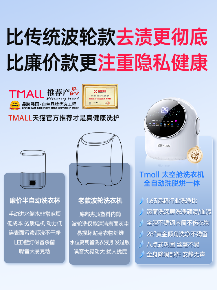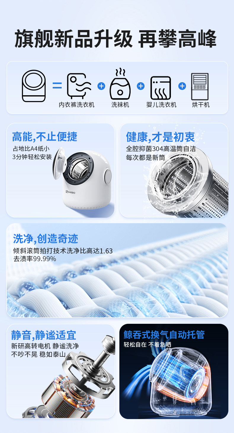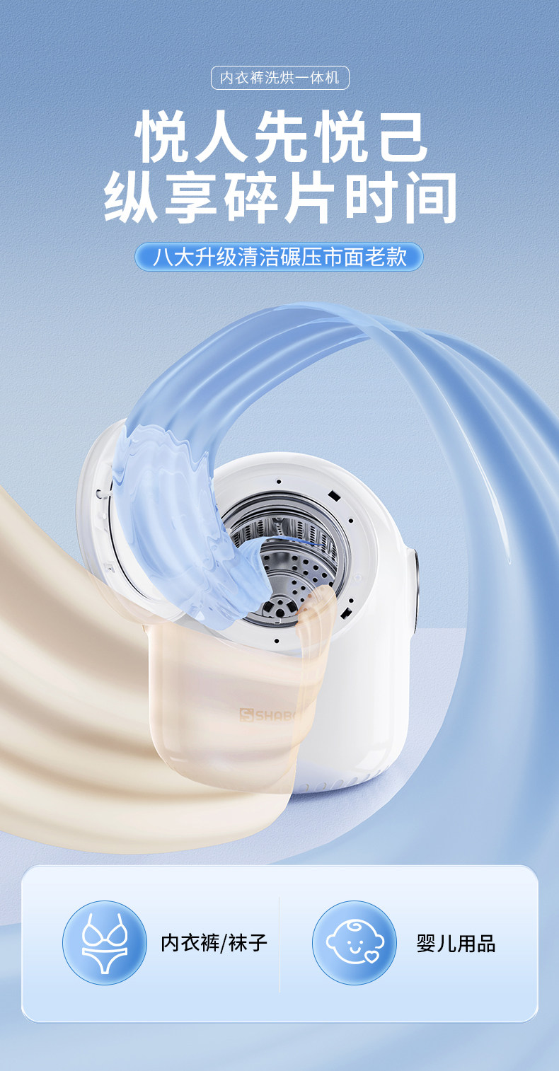 High-Temperature Drum]Mini Washing Machine for Underwear, Special for Panties, Fully Automatic Washing and Drying with Sterilization