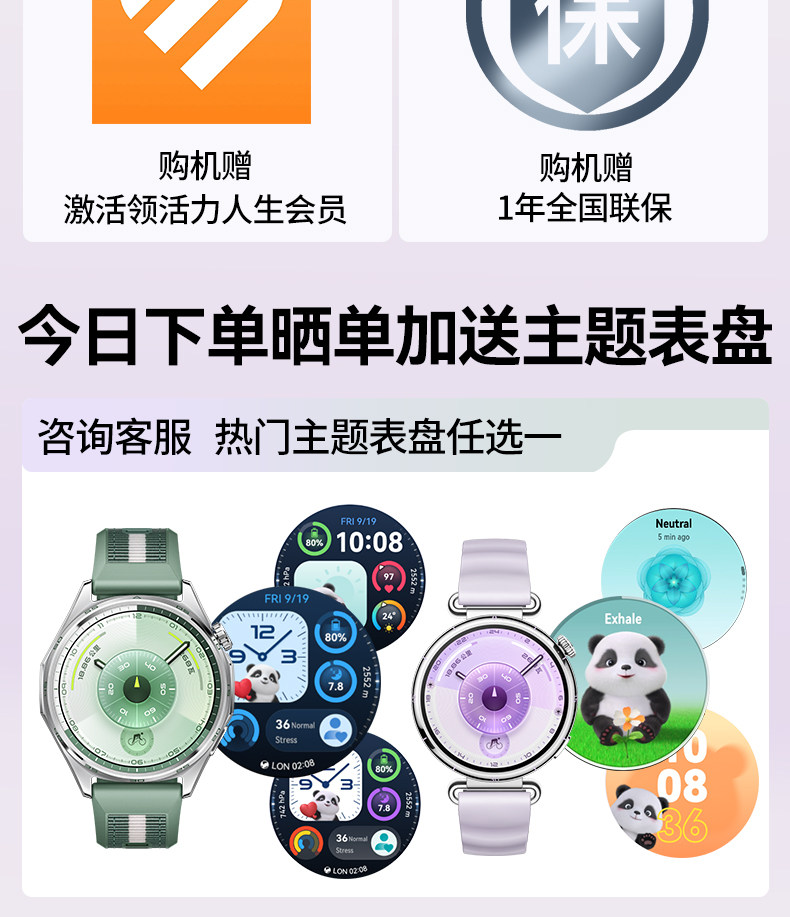 | Appearance Color | Price Guarantee for the Lunar New Year Shopping Festival|Free High-End Watch Strap/Case of Your Choice,Huawei Gt6 [41Mm-Ice Blue] Comes with a High-End Watch Strap/Protective Case + 100 Yuan Gift Bag,Huawei Gt6 [41Mm-Phantom Black] Comes with a High-End Watch Strap/Protective Case + 100 Yuan Gift Bag,Huawei Gt6 [41mm - Iridescent Purple] - Includes Premium Strap/Case + $100 Gift Set,Huawei Gt6 [41Mm-Floating White] Comes with a High-End Watch Strap/Protective Case + a Hundred-Yuan Gift Bag,Huawei Gt6 [41Mm-Saddle Brown] Comes with a High-End Watch Strap/Protective Case + a Hundred-Yuan Gift Bag,Huawei Gt6 [46Mm-Yadan Black] Comes with a High-End Watch Strap/Protective Case + 100 Yuan Gift Bag,Huawei Gt6 [46Mm-Glacier Gray] Comes with a High-End Watch Strap/Protective Case + a Hundred-Yuan Gift Bag,Huawei Gt6 [46Mm-Field Green] Comes with a High-End Watch Strap/Protective Case + 100 Yuan Gift Bag,【Dual Straps】41Mm - Iridescent Purple + Ice Blue Matching Straps,[Limited Edition] 41Mm-Floating White + Saddle Brown Same Style Composite Strap,[Limited Edition] 41Mm-Glossy White + Gold Milanese Strap,[Limited Edition] 41Mm-Floating White + Gold Ceramic White Same Style Strap,【Dual Straps】41Mm - Luminous White + Gold Starry Sky Metal Strap,【Dual Straps】41Mm - Iridescent Purple + Silver Starry Sky Metal Strap,【Dual Straps】41Mm - Iridescent Purple + Silver Ceramic White Matching Straps,【Dual Straps】41Mm - Iridescent Purple + Silver & Gold, Moonlight Silver Matching Straps,【Dual Straps】46Mm - Yadan Black + Black & Gold Metal Strap,【Dual Straps】46Mm - Yadan Black + Black Three-Link Titanium Metal Strap,【Dual Straps】46Mm - Glacier Gray + Silver Three-Link Titanium Metal Strap,【Dual Straps】46Mm - Glacier Gray + Silver & Gold Two-Tone Titanium Metal Strap,Xinyue Gift Box [41Mm-Streamer Purple],Xinyue Gift Box [41Mm-Floating White],Xinyue Gift Box [41Mm-Phantom Black],Xinyue Gift Box [46Mm-Yadan Black],Huawei New Year Gift Box [41mm Phantom Black] + New Year Limited Gift,Huawei New Year Gift Box [41mm Streamer Purple] + New Year Limited Gift,Huawei New Year Gift Box [41mm Ice Blue] + New Year Limited Gift,Huawei New Year Gift Box [41mm Glossy White] + New Year Limited Gift,Huawei New Year Gift Box [46mm Yadan Black] + New Year Limited Gift,Christmas Limited Gift Box [41Mm-Phantom Black],Christmas Limited Gift Box [41Mm-Streaming Purple],Christmas Limited Gift Box [41Mm-Floating White],Christmas Limited Gift Box [46Mm-Yadan Black] |