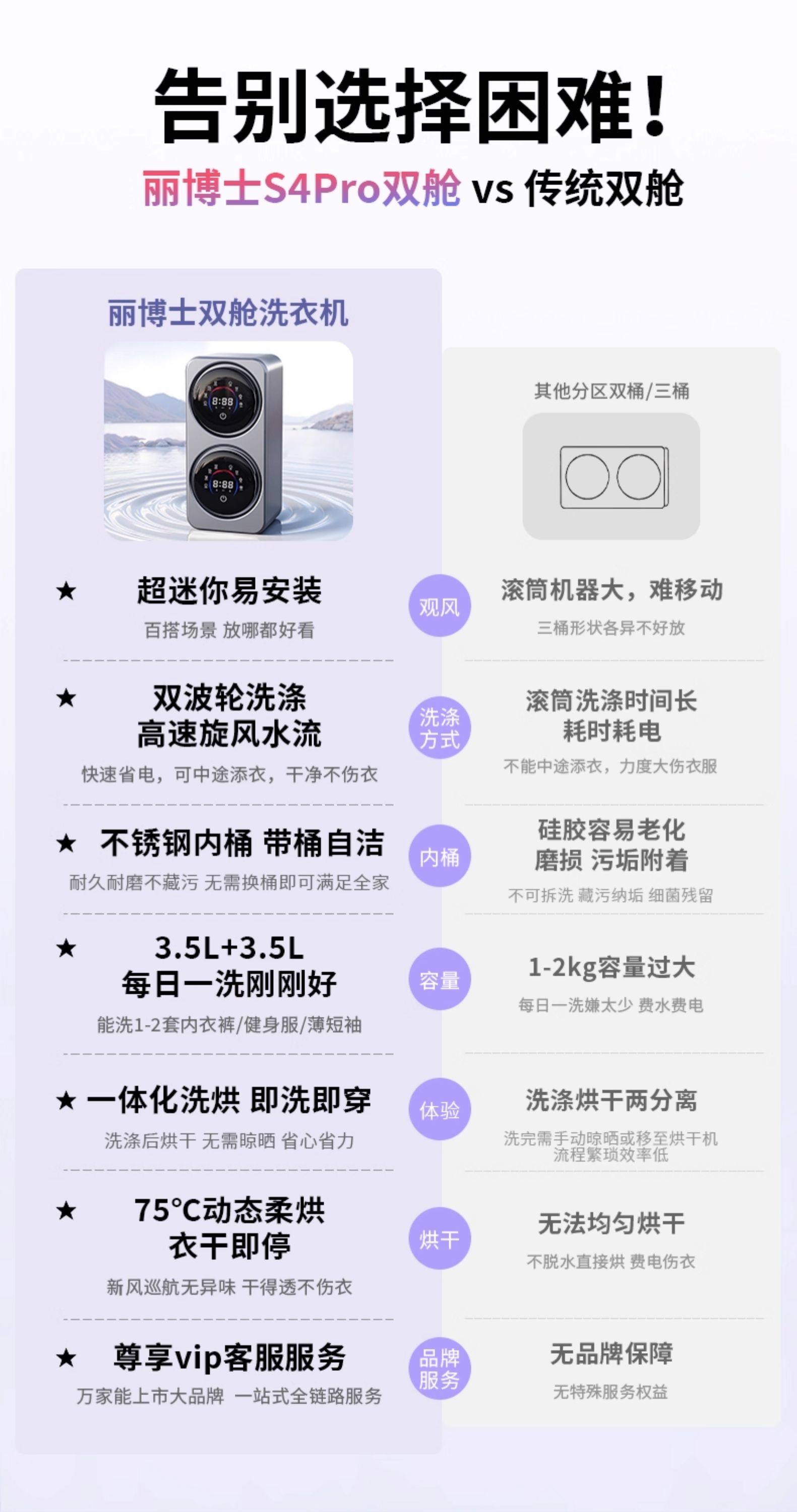 | Color Classification | [Official Brand Authentic Products Without Premium] 5-Year Replacement and 10-Year Warranty,[Flagship Brand Guarantee] 30-Day Free Trial,S4 [Desktop Model·White] Smart Double Bucket◆Washing and Drying in One◆Silver Ion Sterilization,S4Pro White [Wall-Mounted & Desktop Dual-Use] Smart Dual-Cabin◆70°Washing and Drying in One◆Silver Ion Sterilization,S4 [Desktop Model·Titanium Gray] Built-In Anti-Shake◆Smart Double Cabin◆Washing and Drying in One◆Silver Ion Sterilization,S4Pro Titanium Gray [Wall-Mounted Dual-Use Model] Supports Wall-Mounted Desktop◆Smart Double Cabin◆70°Washing and Drying in One◆Silver Ion Sterilization,S4Pro White [Four-Cabin Combo] - Wall Mount & Desktop Compatible⭐Four-Cabin Family Laundry⭐Fully Automatic Partitioned Three-Dimensional Washing and Drying,S4Pro Titanium Gray [Four-Cabin Combination] Supports Wall-Mounted Desktop⭐Four-Cabin Family Laundry⭐Fully Automatic Partitioned Three-Dimensional Washing and Drying,S5 White [Wall-Mounted Dual-Purpose] Smart Dual-Cabin◆Washing and Drying in One◆Silver Ion Sterilization,S5Pro Titanium Gray [Wall-Mounted Dual-Use Model] Supports Wall-Mounted Desktop◆Smart Double Cabin◆Washing and Drying in One◆Silver Ion Sterilization,【Nationwide 0 Service Fee · On-Site Installation】Supports Measurement/Installation/Drilling,【Officially Certified & Audited】Trusted Source, Authentic and Verified.,【Pre-Order Survey】Contact Customer Service to Schedule a Survey after Placing Your Order. Full Refund if Survey Is Not Passed,S5Pro White [Four-Cabin Combo] - Wall Mount & Desktop Compatible⭐Four-Cabin Family Laundry⭐Fully Automatic Partitioned Three-Dimensional Washing and Drying,S5Pro Titanium Gray [Four-Cabin Combination] Supports Wall-Mounted Desktop⭐Four-Cabin Family Laundry⭐Fully Automatic Partitioned Three-Dimensional Washing and Drying |