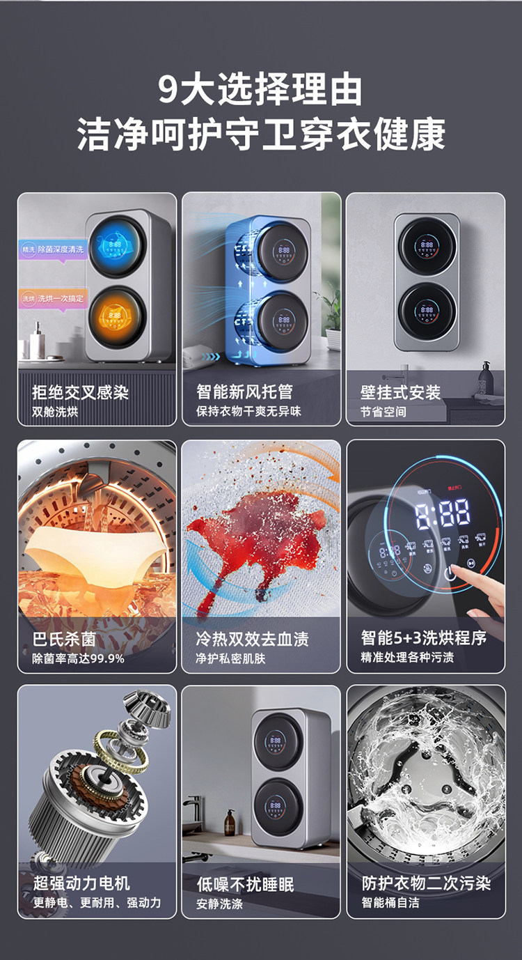 Dr. Li's Double-Cylinder Drum Washing Machine for Underwear, Wall-Mounted Mini Washing Machine, Fully Automatic Small Washing and Drying Machine