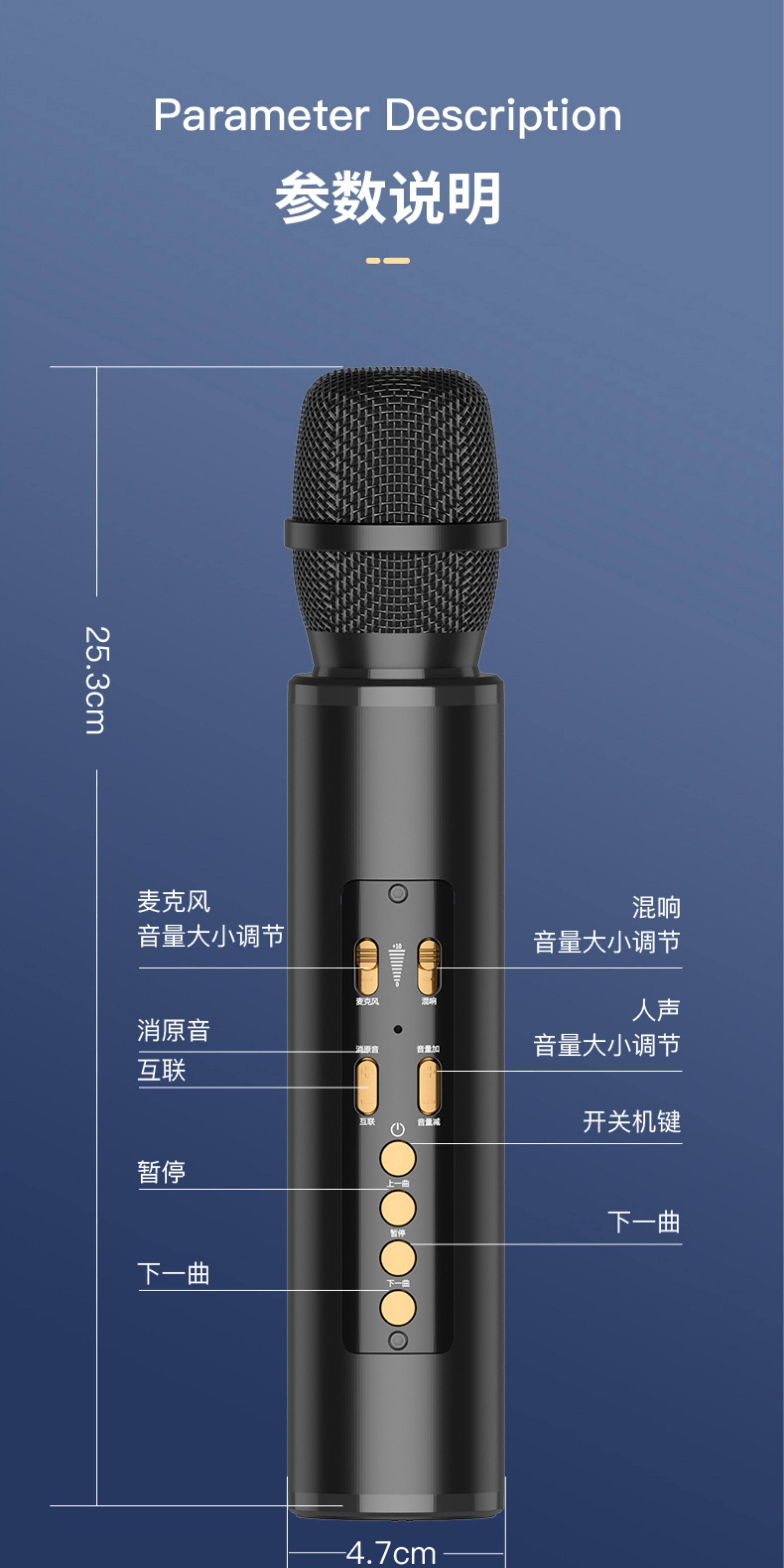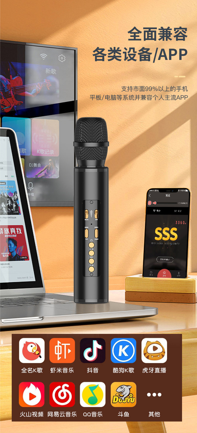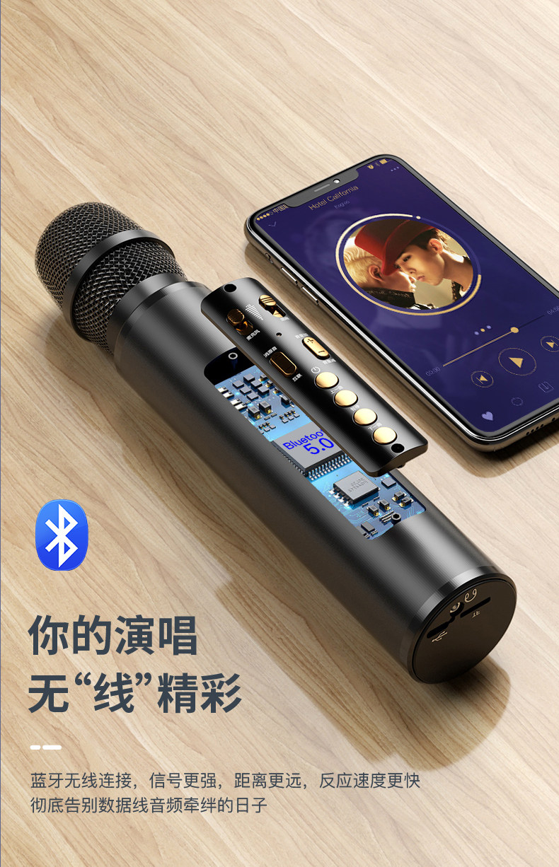 Microphone, Speaker, and Audio All-In-One for Home Use, Bluetooth Karaoke for Mobile Phones, Universal for Children's Singing, Wireless Ktv, Conference, and Music