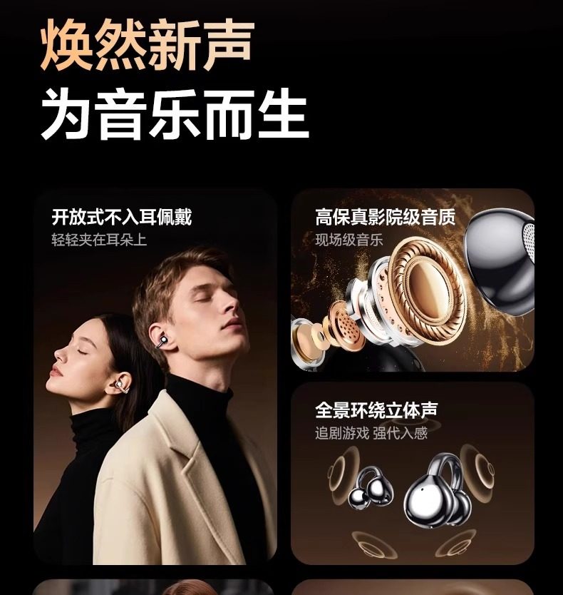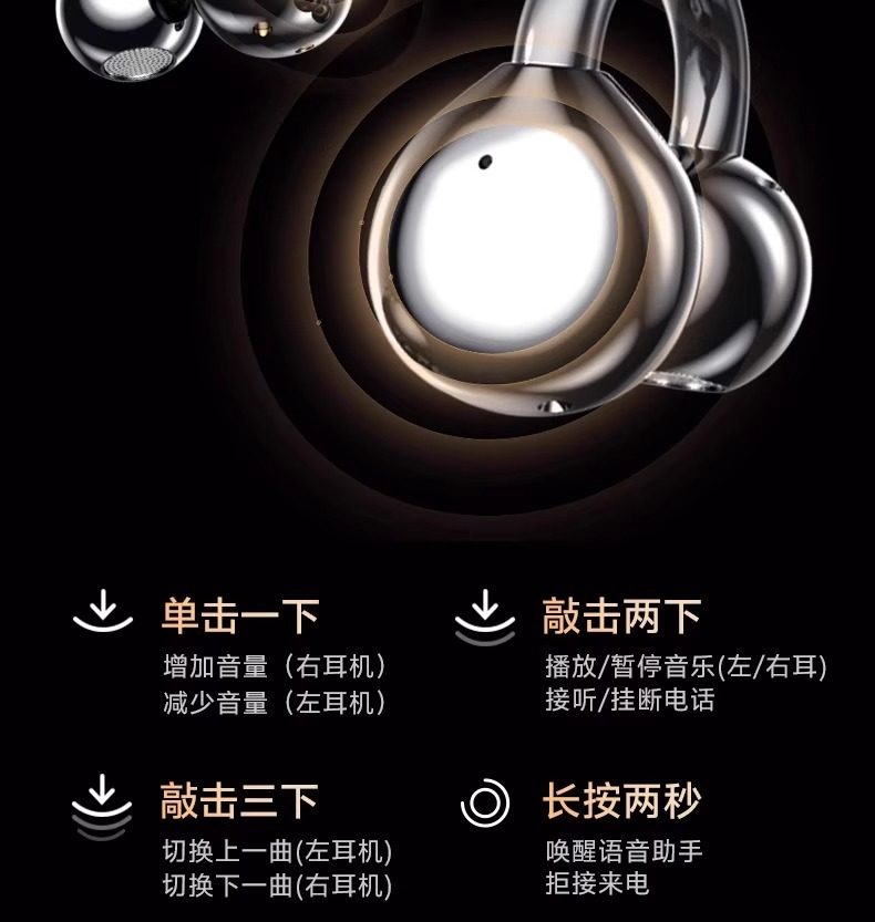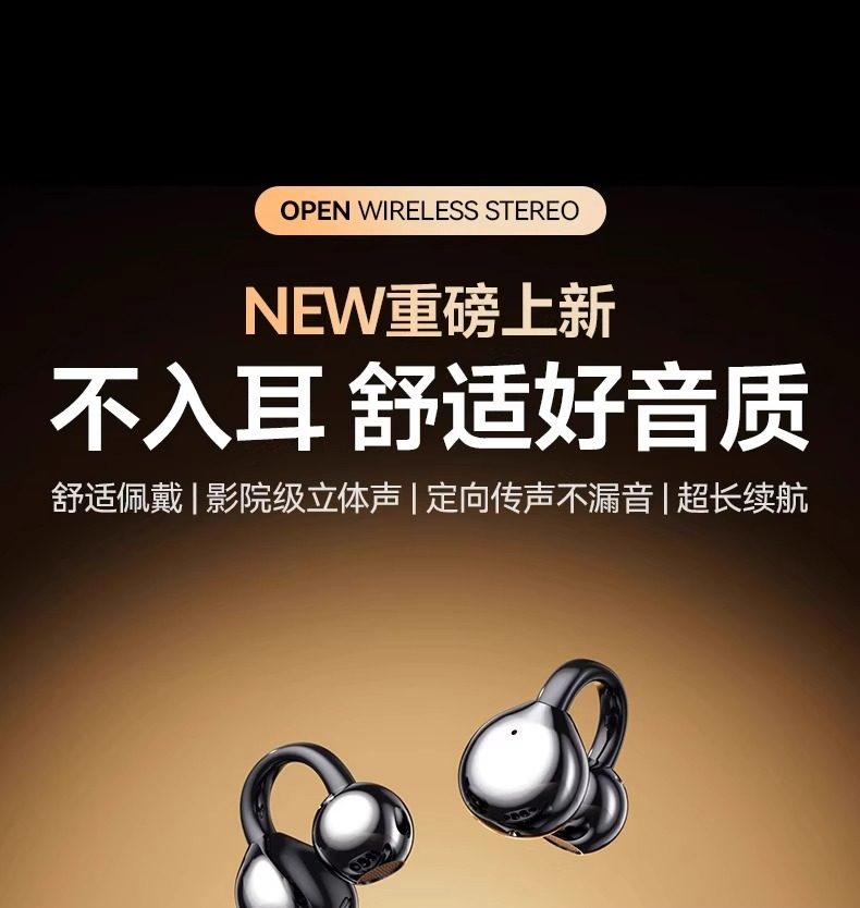 Berlin Sound Bluetooth Headphones Bone Conduction 2025 New Model Sports In-Ear Wireless Ear Clip Noise Reduction Long Battery Life