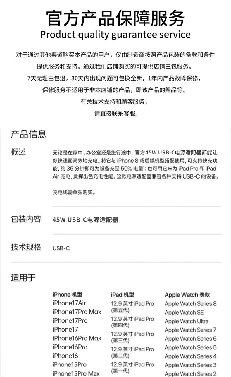 | Color Classification | [Tmall Next Day Delivery] Faster Than ! [Do Not Take Pictures of This Item, the Default Is 45W Head],The Following Options Are Applicable to [17-15 Only] Official Authentic Products,[Official] 45W Power Adapter,[Special for 17-15 - Braided Cable] 45W Fast Charging Head + 1.0m Double Type-C Braided Cables,[Special for 17-15 - Braided Cable] 45W Fast Charging Head + 1.5m Double Type-C Braided Cables,[Special for 17-15 - Braided Cable] 45W Fast Charging Head + 2.0m Double Type-C Braided Cables,[Exclusively for 17-15] 45W Fast Charging Head + 1.0m Dual Type-C Fast Charging Cables,[Exclusively for 17-15] 45W Fast Charging Head + 1.5m Dual Type-C Fast Charging Cables,[Exclusively for 17-15] 45W Fast Charging Head + 2.0m Dual Type-C Fast Charging Cables,[Special for 17-15] 1.0m Double Type-C Braided Fast Charging Cable [Pack of Two],[Special for 17-15] 1.5m Double Type-C Braided Fast Charging Cable [Pack of Two],[Special for 17-15] 2.0m Double Type-C Braided Fast Charging Cable [Pack of Two],The Following Options Are Applicable to [8-14 Only] Official Authentic Products,[8-14 Only] 45W Fast Charging Head + 1.0m Pd Fast Charging Cable,[8-14 Only] 45W Fast Charging Head + 1.5m Pd Fast Charging Cable,[8-14 Only] 45W Fast Charging Head + 2.0m Pd Fast Charging Cable,[8-14 Only] 1.0m Pd Fast Charging Cable [Pack of Two],[8-14 Only] 1.5m Pd Fast Charging Cable [Pack of Two],[8-14 Only] 2.0m Pd Fast Charging Cable [Pack of Two] |
