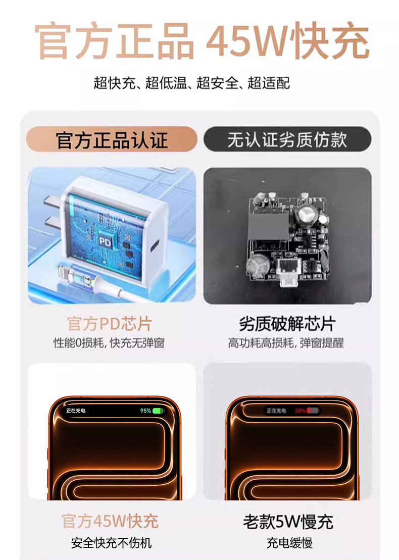 [17 New Model Exclusive][45W Fast Charging]Bs Compatible Apple 17 Pro Max Charger Head Original 15 Genuine Mobile Phone iPhone 16 Pro Data Cable 14 Plus Braided 13 Tablet Pd