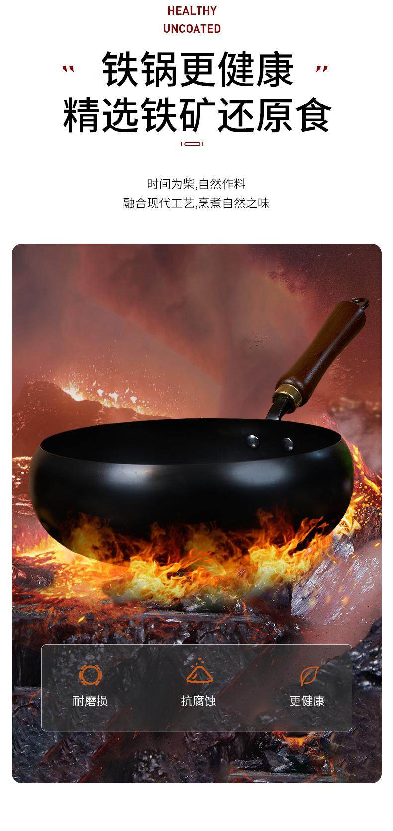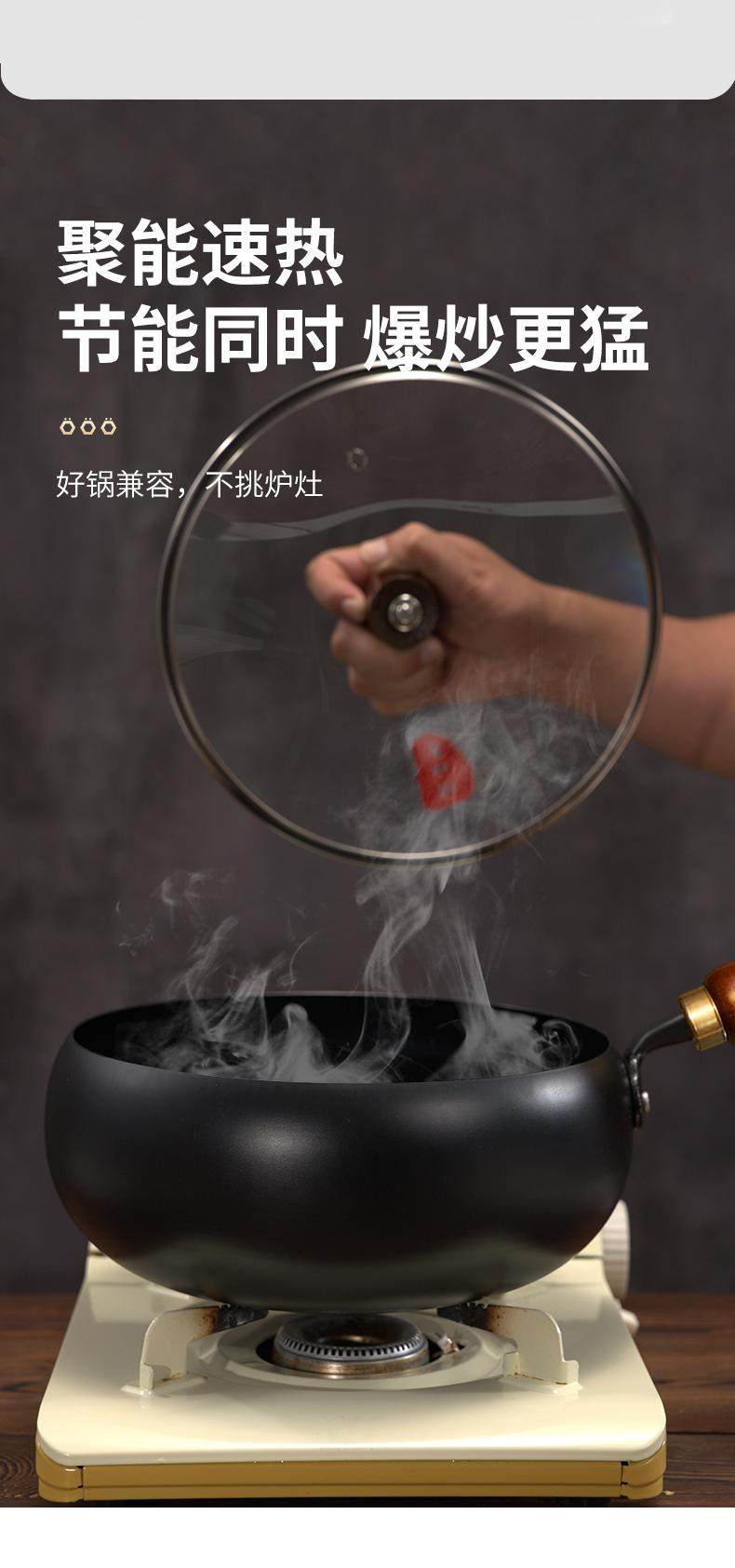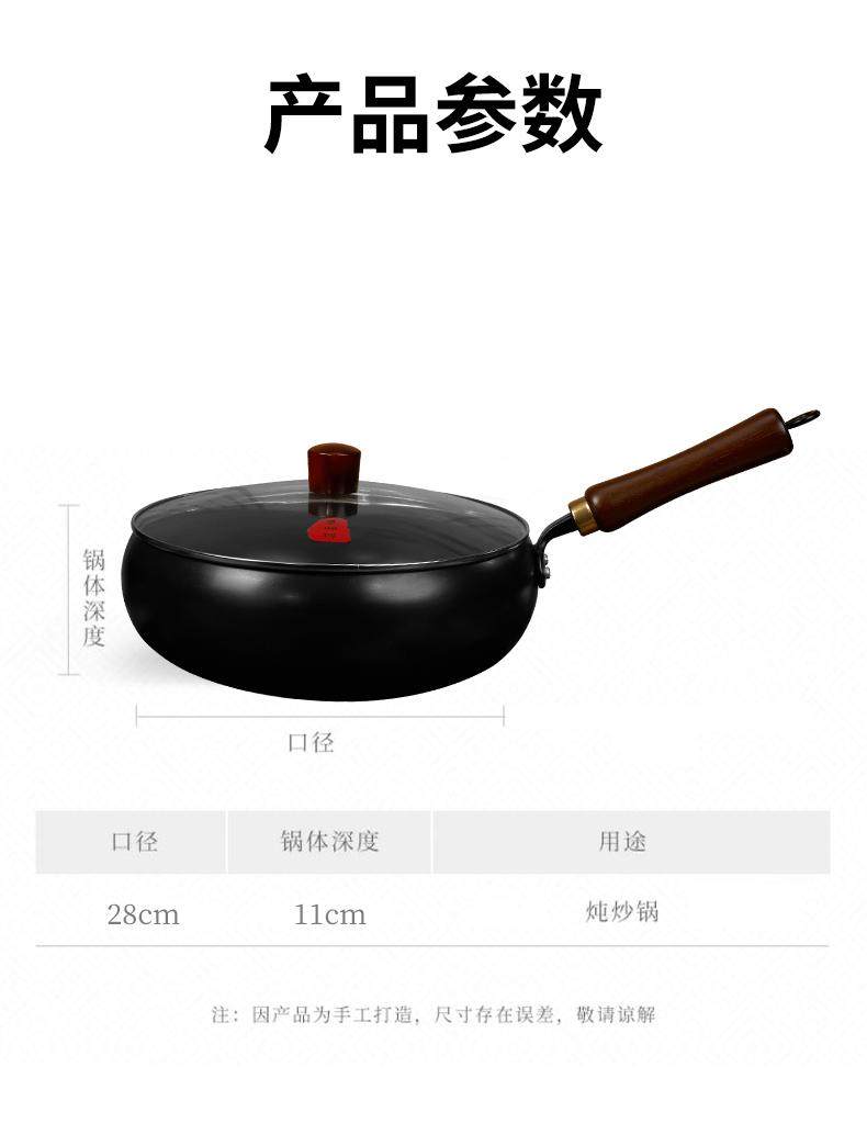 [Extra Large Size 28Cm]Traditional Big Belly Wok by Master Zhang, Household Iron Wok, Non-Stick Pan, Flat Bottom Frying Pan, Thick