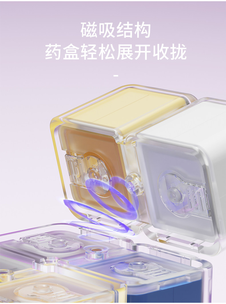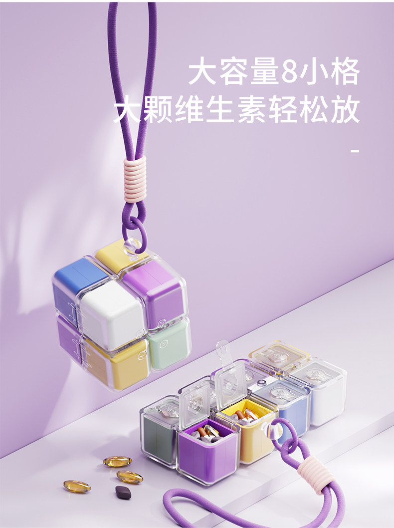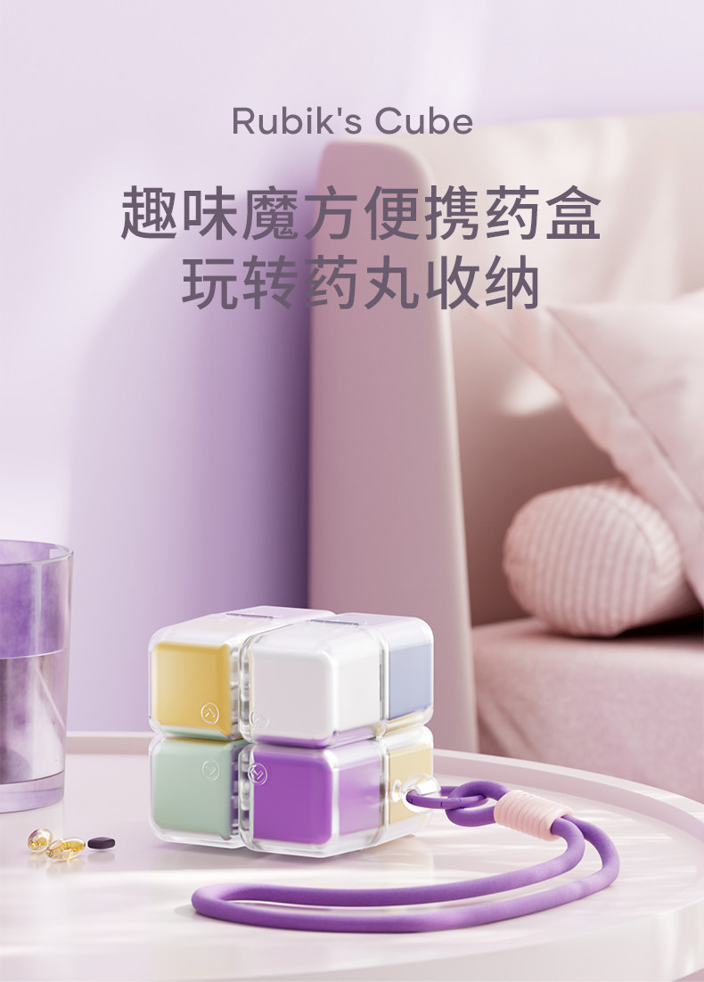 Magic Cube Pill Box, Portable Magnetic Sealed Moisture-Proof Small Pill Box, Large Capacity, Seven-Day-A-Week Medicine Dispensing Box