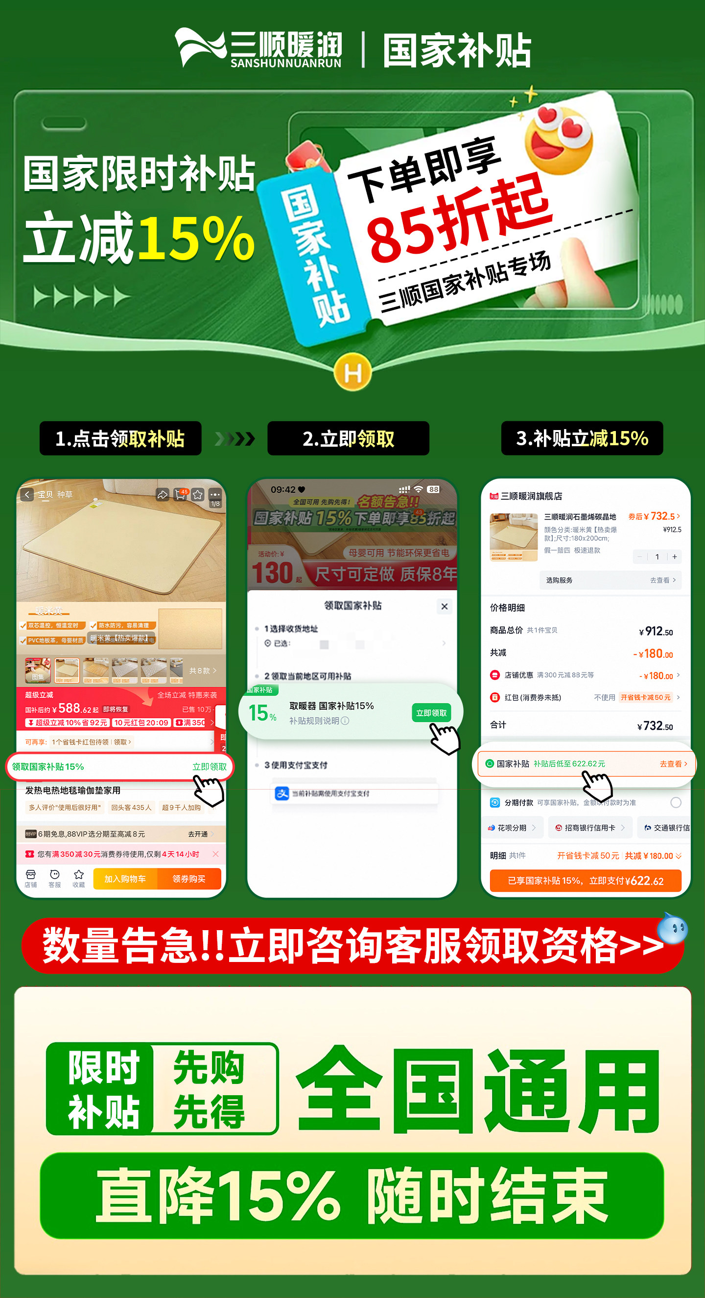 Sanshun Warm Graphene Electric Heating Floor Mat Carpet Living Room New Type Home Heating Floor Mat Carbon Crystal Floor Heating