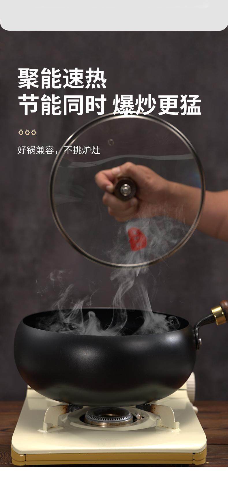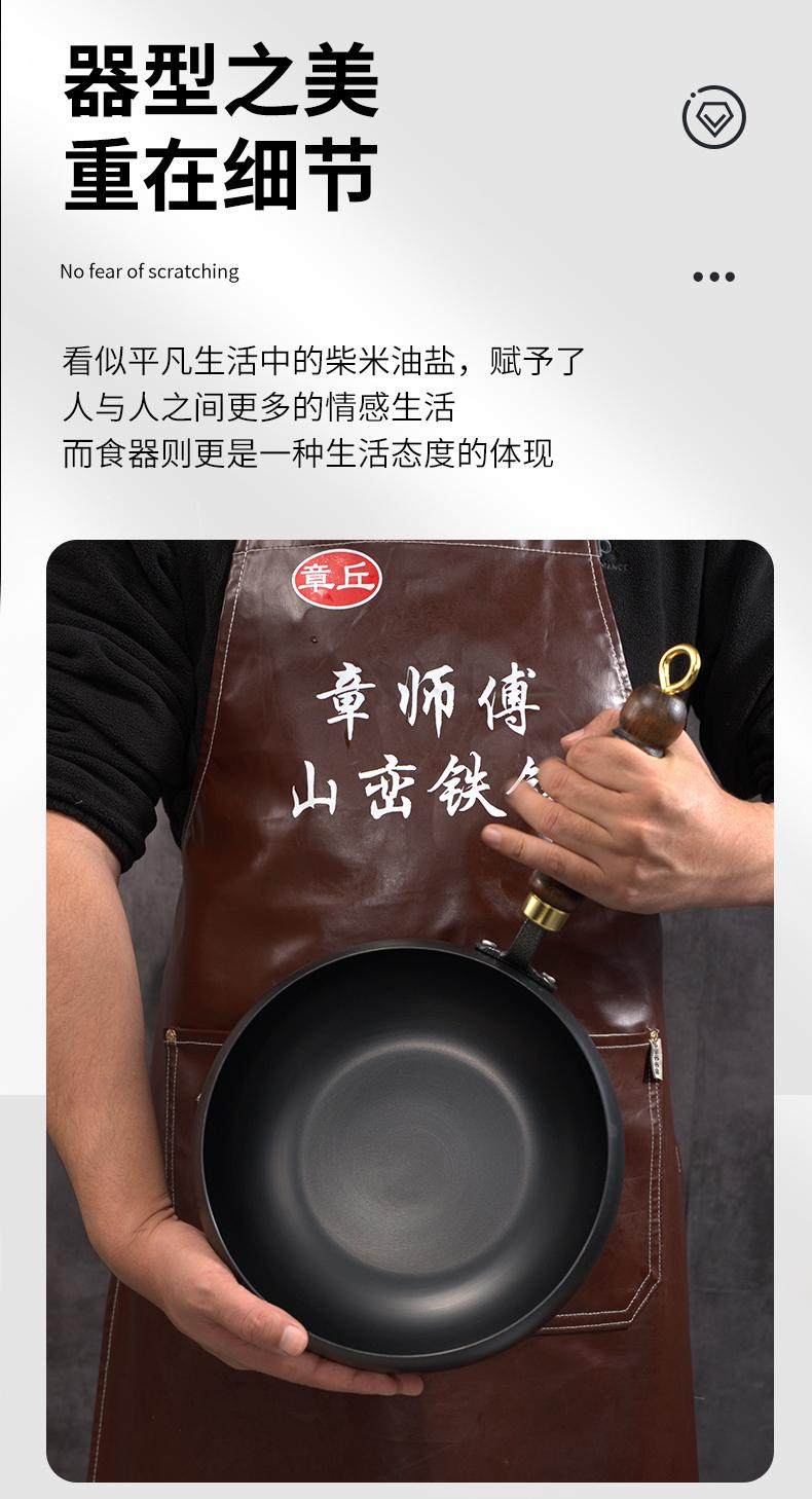 [Three Times the Heat]Authentic Traditional Iron Wok from Master Zhang, Non-Stick Flat-Bottomed Cooking Pot for Home Use