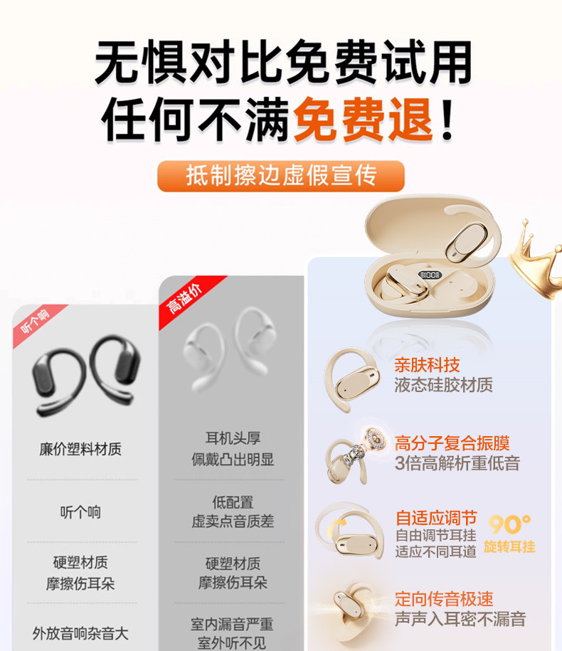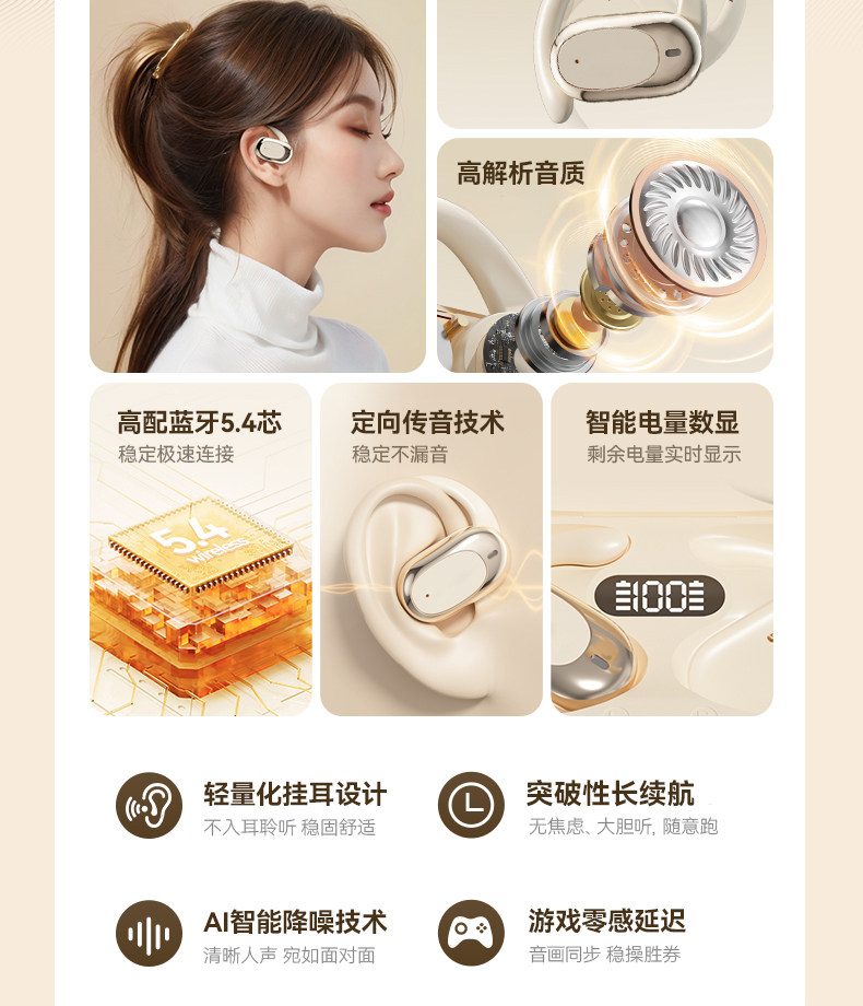 | Model | Open-Ear Bluetooth Headphones with Ear-Hook Design and Noise Cancellation. |