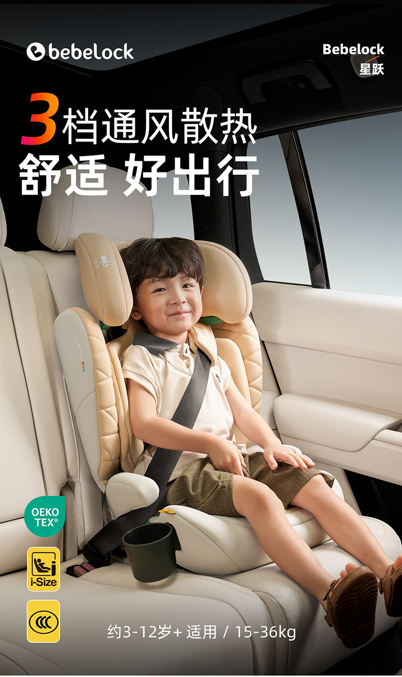 Bebelock Large Child Car Seat for Children Aged 3 and Above, Portable for Use in Cars, Suitable for Babies Aged 3-12 Years