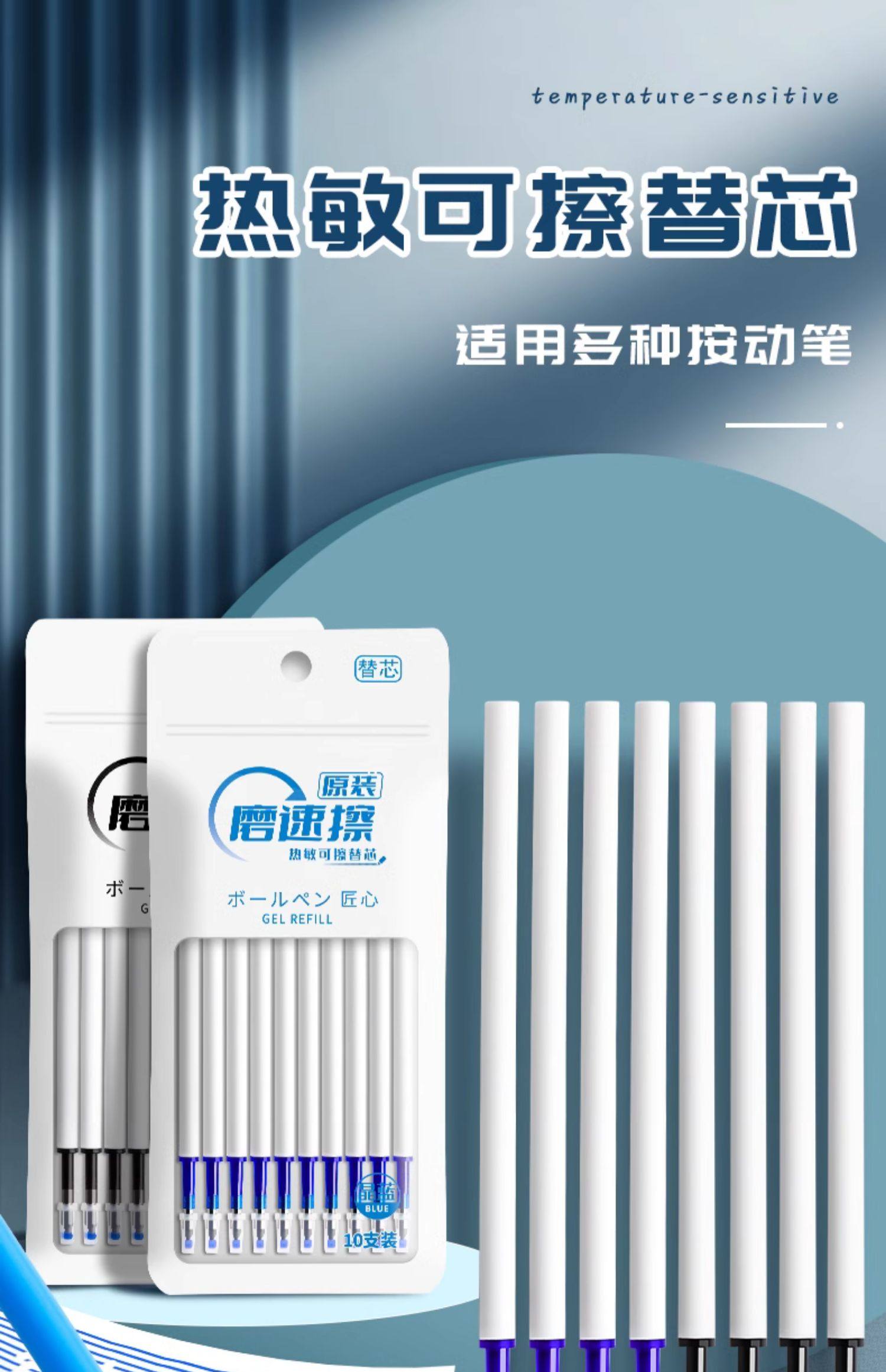 | Color Classification | [10 Pieces]Thermal Erasable Pen Refill/Crystal Blue,[10 Pieces]Thermal Erasable Refill/Black,[20 Pieces]Thermal Erasable Pen Refill/Crystal Blue,[20 Pieces]Thermal Erasable Refill/Black,[40 Pieces]Thermal Erasable Pen Refill/Crystal Blue,[40 Pieces]Thermal Erasable Refill/Black,[60 Pieces]Thermal Erasable Pen Refill/Crystal Blue,[80 Pieces]Thermal Erasable Pen Refill/Crystal Blue,[20 Pieces of Mixed Colors]Thermal Erasable Pen Refill/Crystal Blue+Black,[40 Pieces of Mixed Colors]Thermal Erasable Pen Refill/Crystal Blue+Black,[10 Pieces]Thermal Erasable Pen Refills/Crystal Blue + 3 Erasable Pens,[10 Pieces]Thermal Erasable Pen Refills/Black + 3 Erasable Pens,[20 Pieces]Thermal Erasable Pen Refills/Crystal Blue + 3 Erasable Pens,[20 Pieces]Thermal Erasable Pen Refills/Black + 3 Erasable Pens,[40 Pieces]Thermal Erasable Pen Refills/Crystal Blue + 3 Erasable Pens,[40 Pieces]Thermal Erasable Pen Refills/Black + 3 Erasable Pens,[80 Pieces]Thermal Erasable Pen Refills/Crystal Blue + 3 Erasable Pens,[80 Pieces]Thermal Erasable Pen Refills/Black + 3 Erasable Pens |
