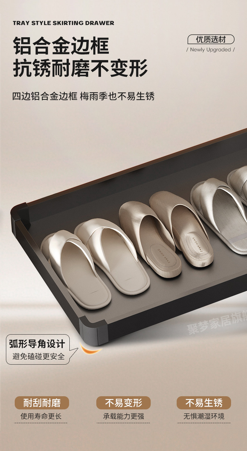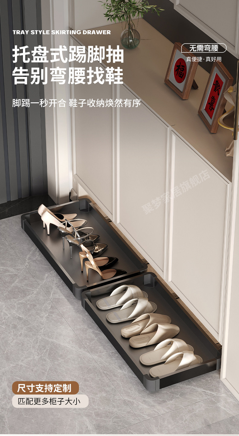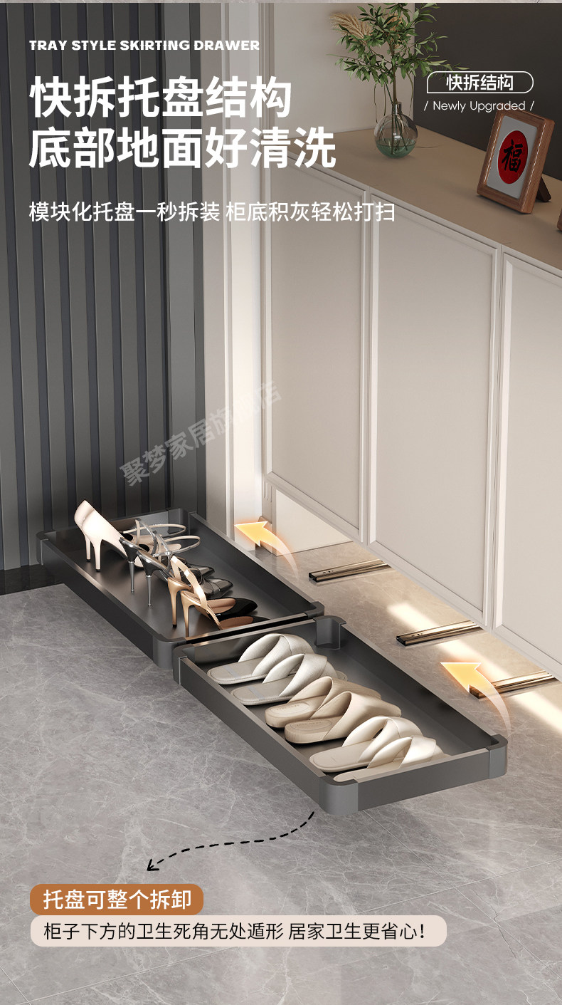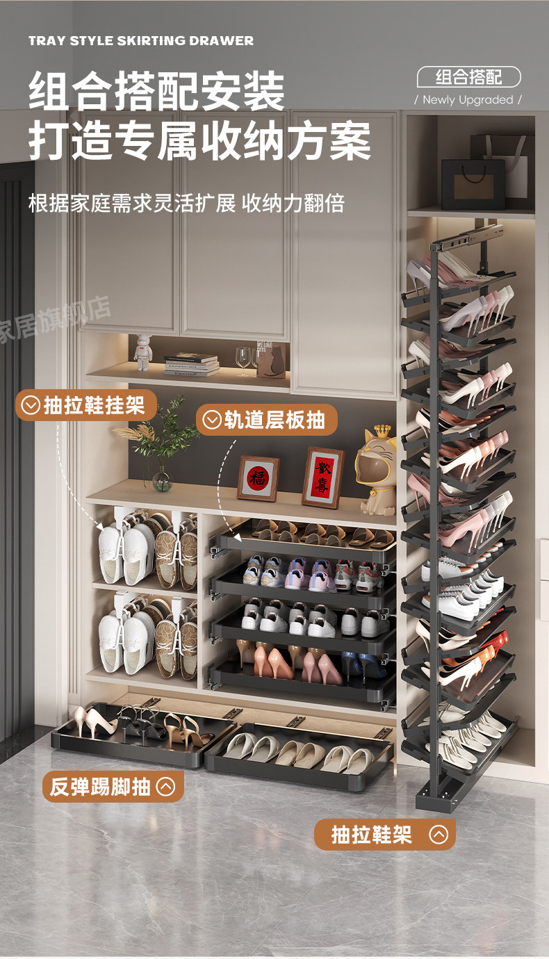 Pull-Out Shoe Rack with Bottom Tray Storage and Rebound Slide Rail for Entryway and Home Use