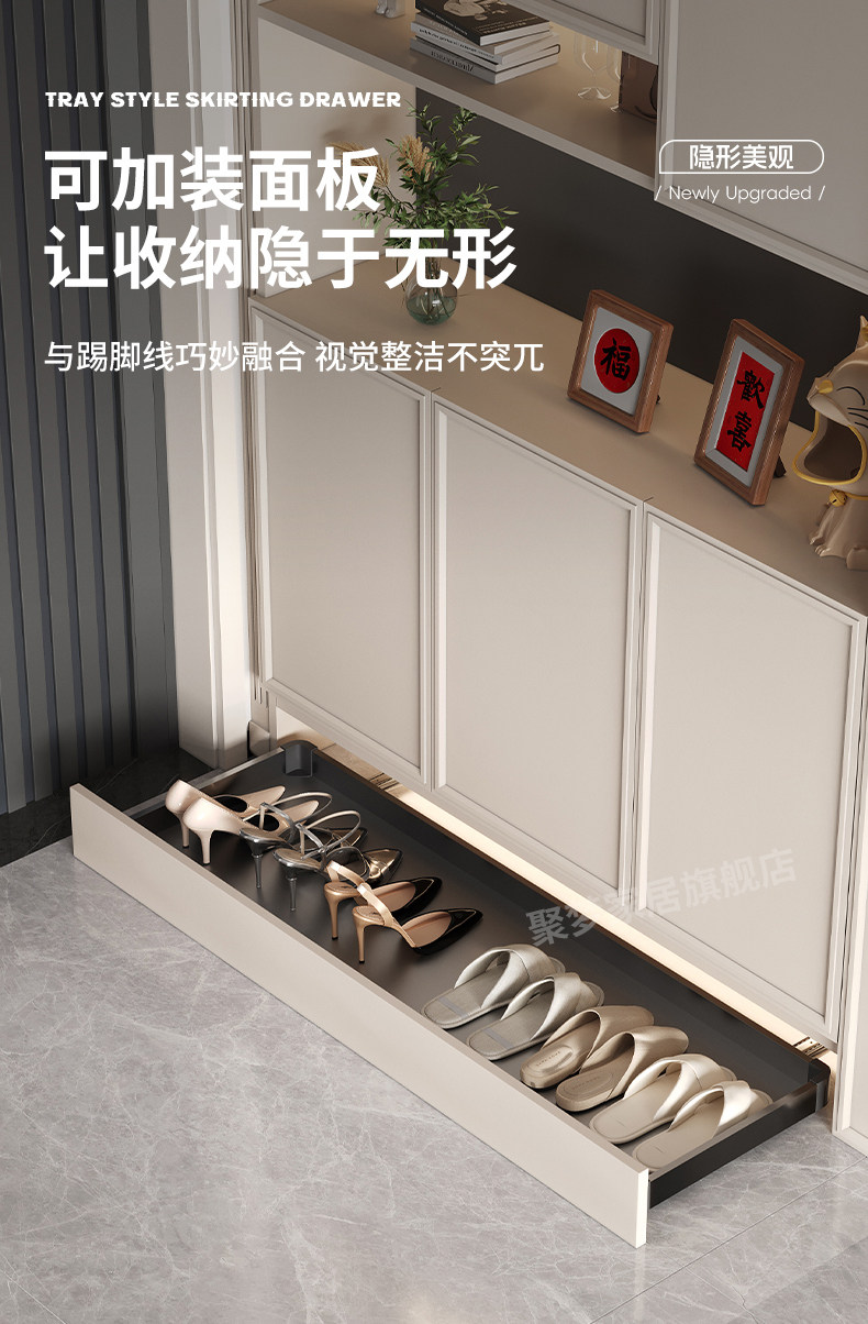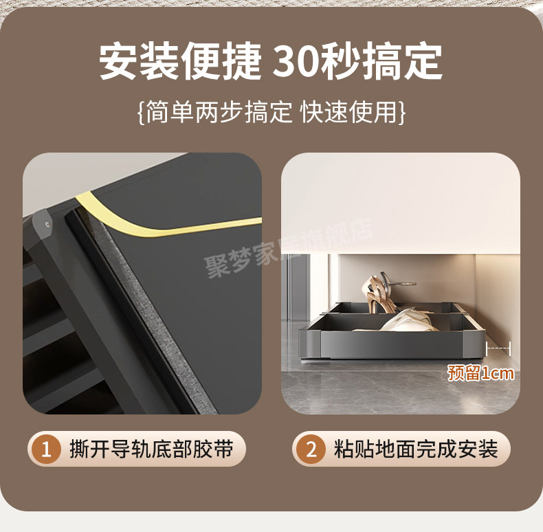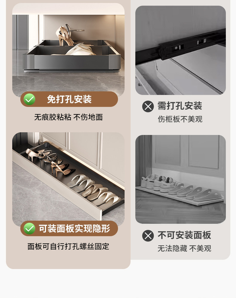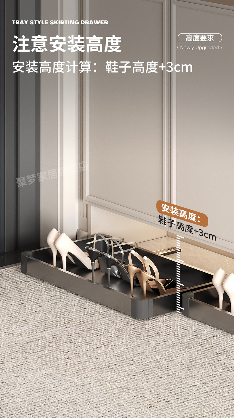 Pull-Out Shoe Rack with Bottom Tray Storage and Rebound Slide Rail for Entryway and Home Use