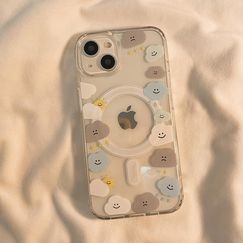 Cute Cloud Emoji Magnetic Case Suitable for Apple 17/14 Pro Max Phone Case, Transparent iPhone 13 New Model 16 Female 14 Pro Large Hole