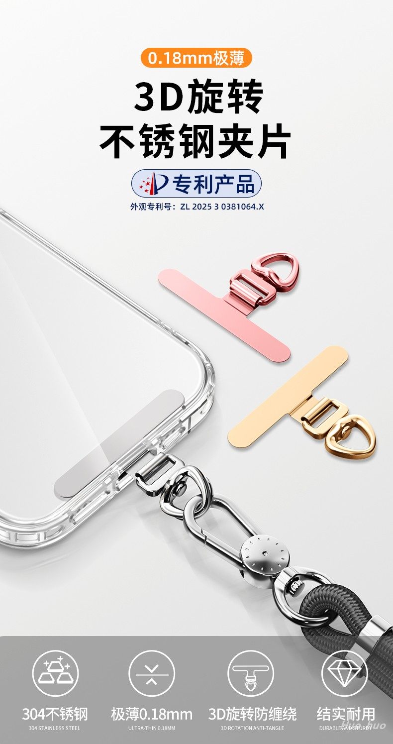 Mobile Phone Lanyard Clip Metal Rotatable Stainless Steel Spacer Ultra-Thin Crossbody Chain Neck Wrist Phone Case Back Clip