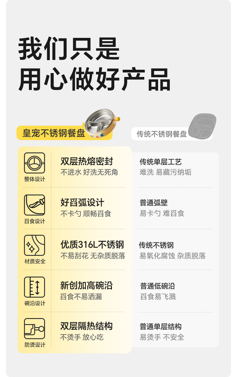 Royal Pet Baby Feeding Plate, Self-Feeding, Divided, Suction Cup Type, Complementary Food, Baby Water-Filled, Insulated, Stainless Steel, Children's Dining Plate