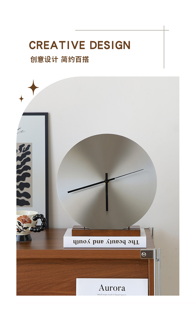 Nordic Minimalist Desktop Clock Ornament, Silent Table Clock, Living Room Tv Cabinet High-End Decoration