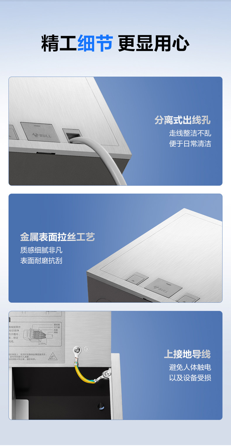 Bull Brand Floor Socket, Invisible Embedded Flat Ultra-Thin New Upgraded Floor Five-Hole Waterproof Socket, Stainless Steel