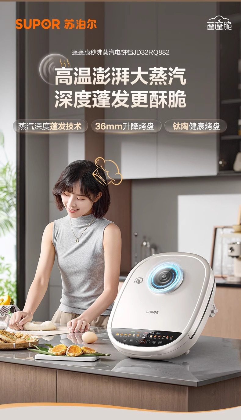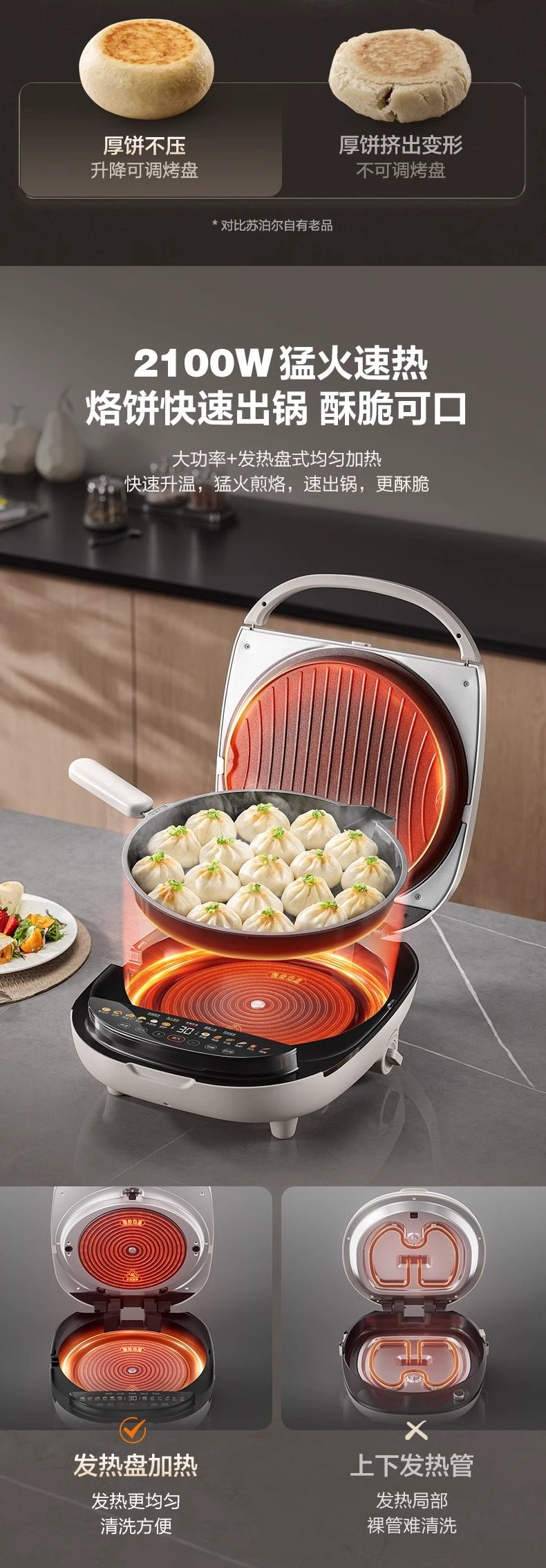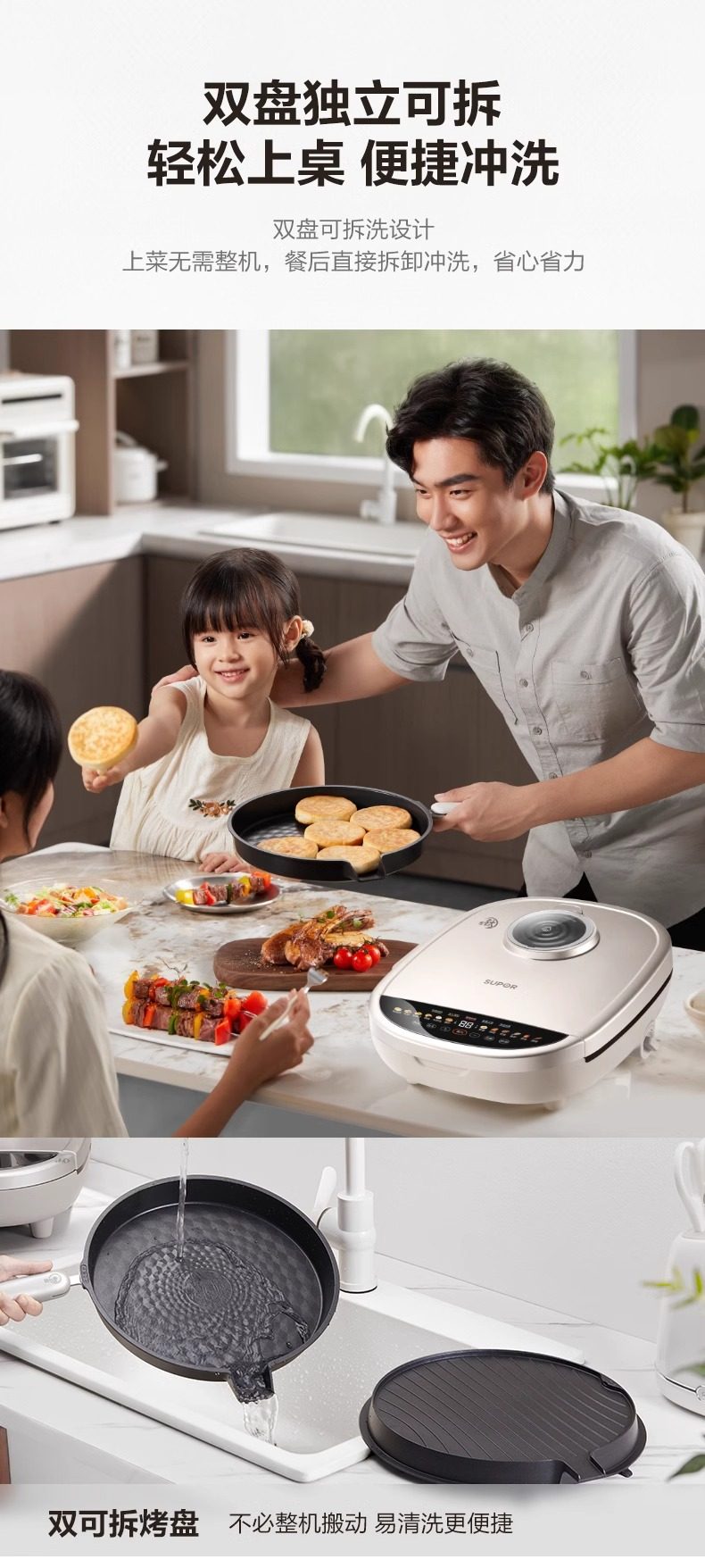 Supor Smart Electric Griddle for Home Use, Double-Sided Heating, Detachable and Washable, Deepened and Enlarged, Electric Frying Pan, 2025 New Model
