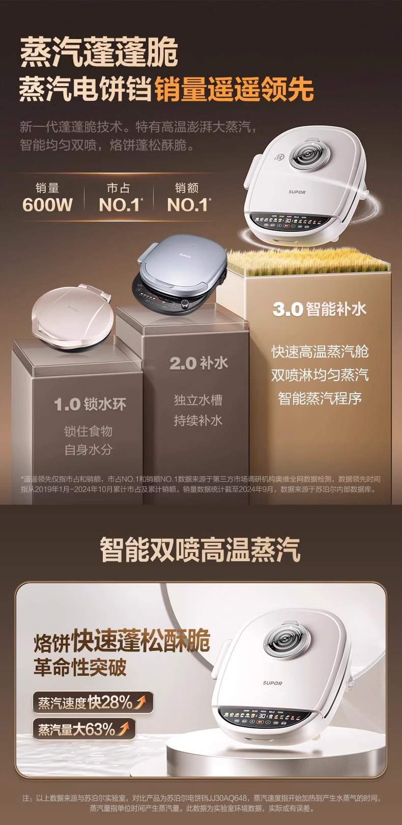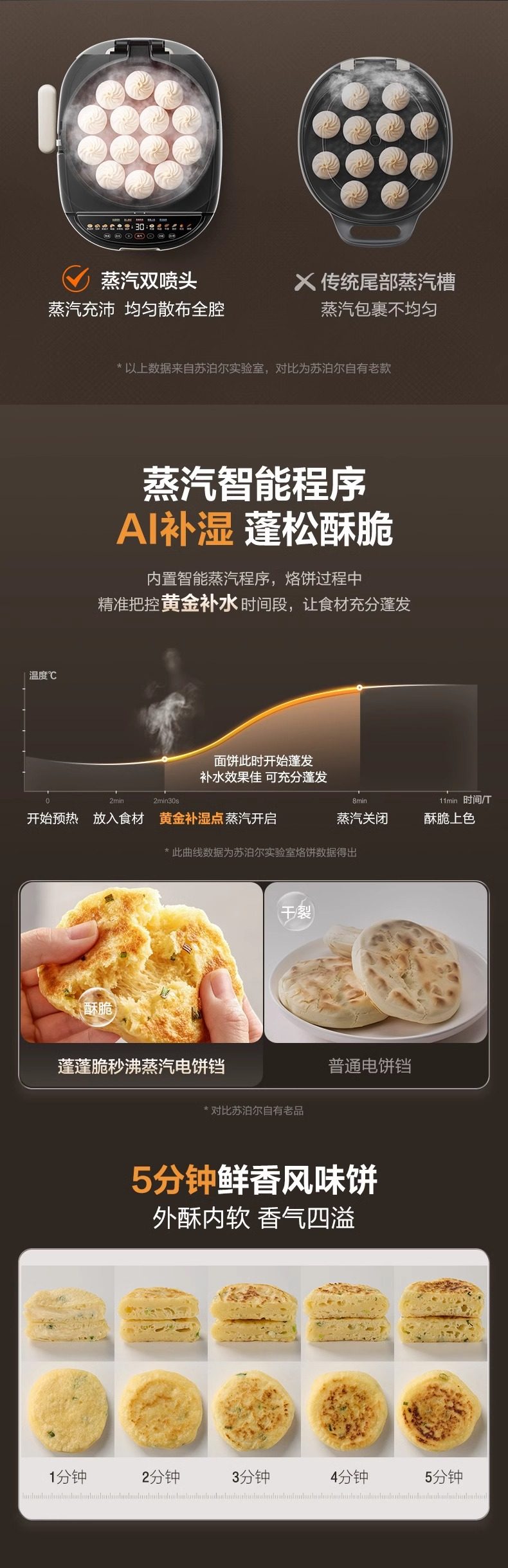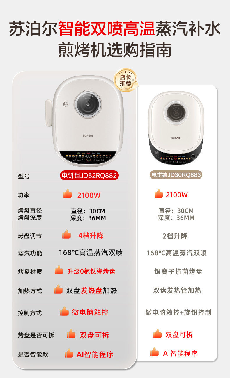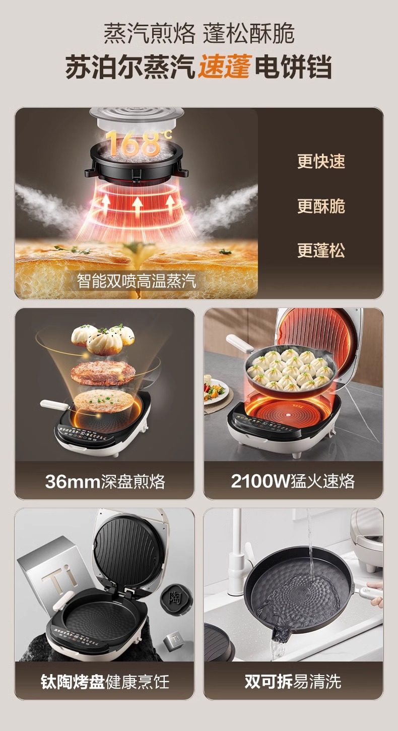 Supor Smart Electric Griddle for Home Use, Double-Sided Heating, Detachable and Washable, Deepened and Enlarged, Electric Frying Pan, 2025 New Model