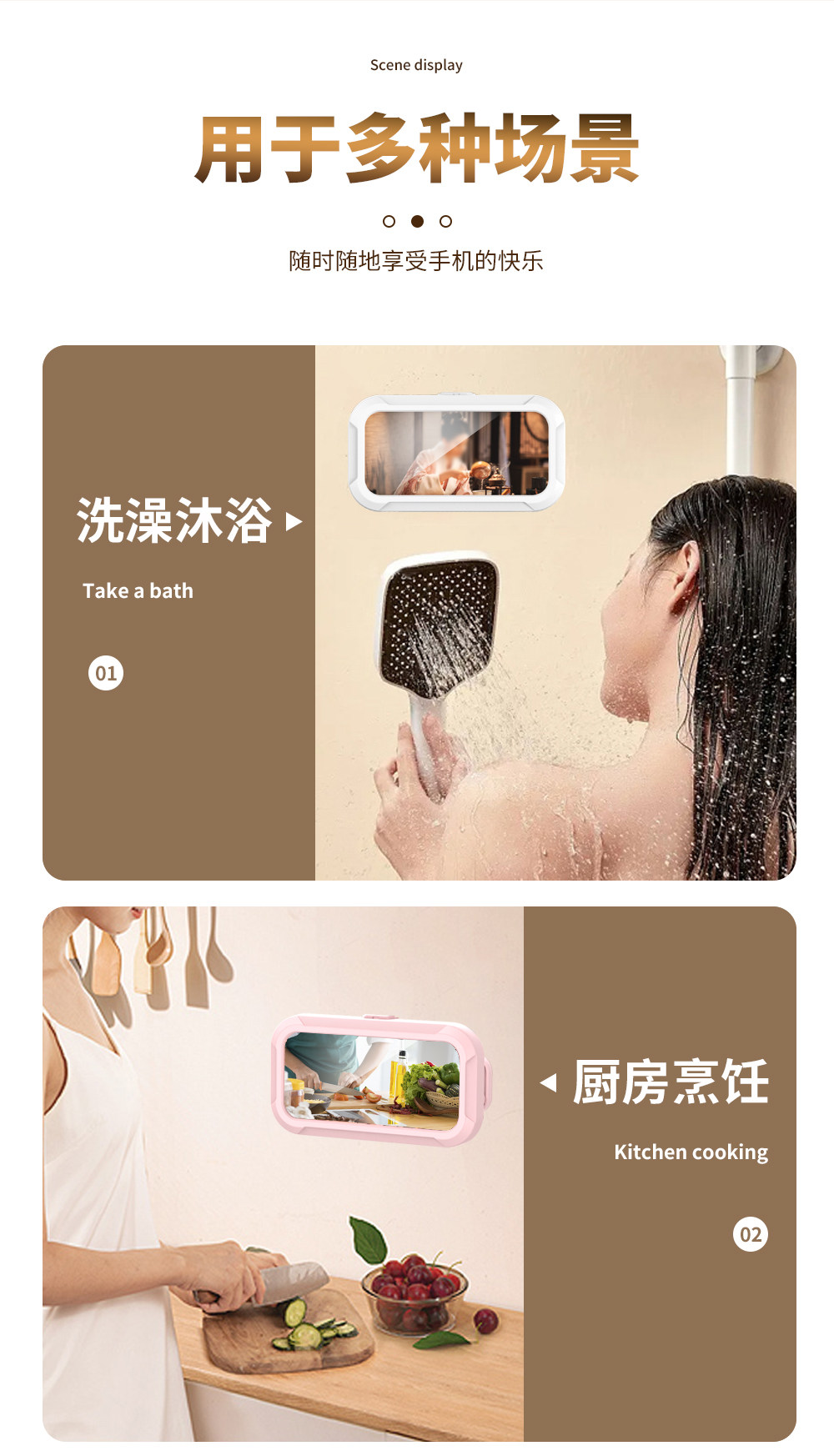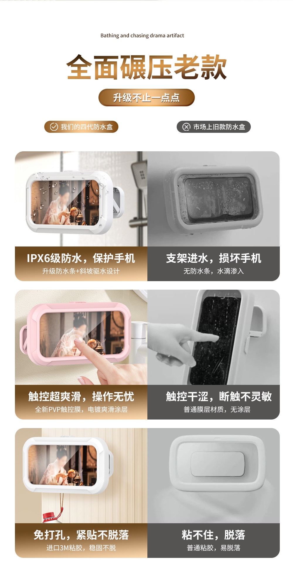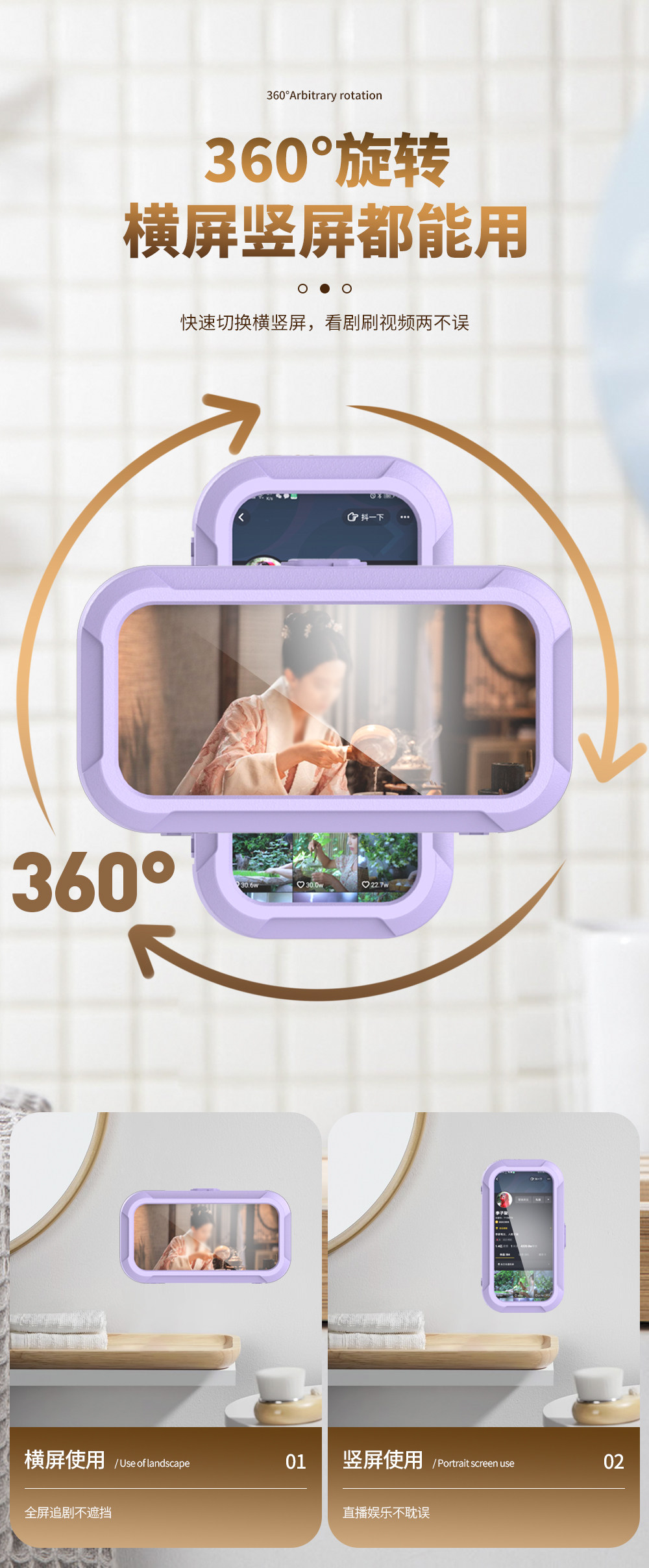 Bathroom and Kitchen Anti-Fog Waterproof Phone Holder, Telescopic and Rotatable, for Watching Shows While Bathing, Lazy Person's Waterproof Phone Case