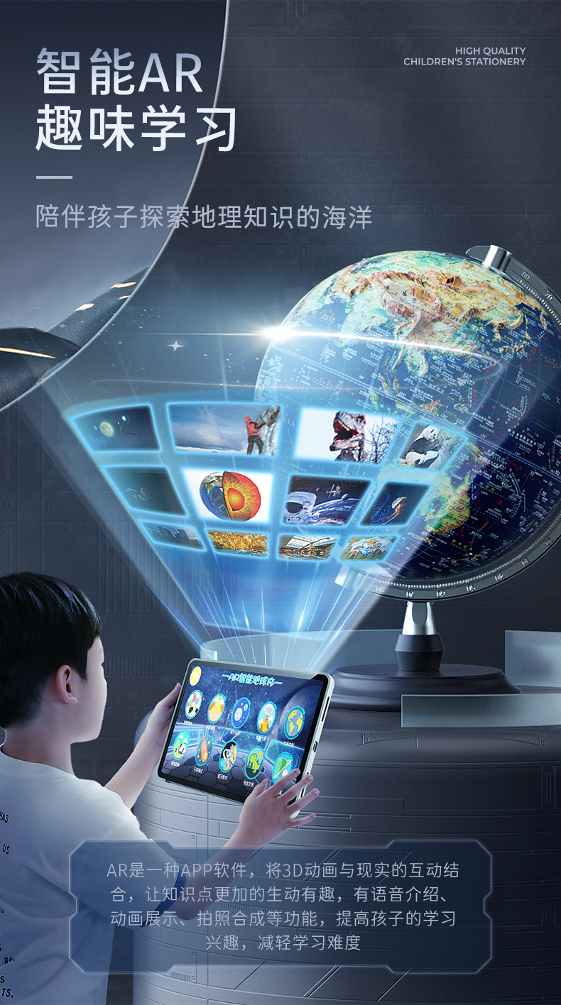 [Clearance Sale] Enmi Ar Globe 3D Floating Globe for Students, Junior High School Students, Embossed Relief Decoration, Children's Educational Smart World Map, Large Size, Boys and Girls Birthday Gift, Authentic
