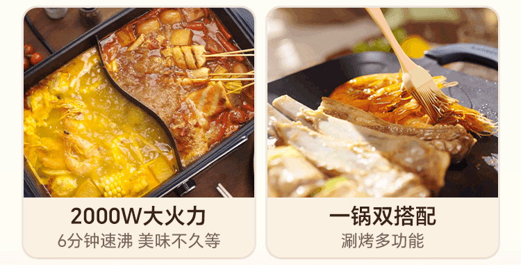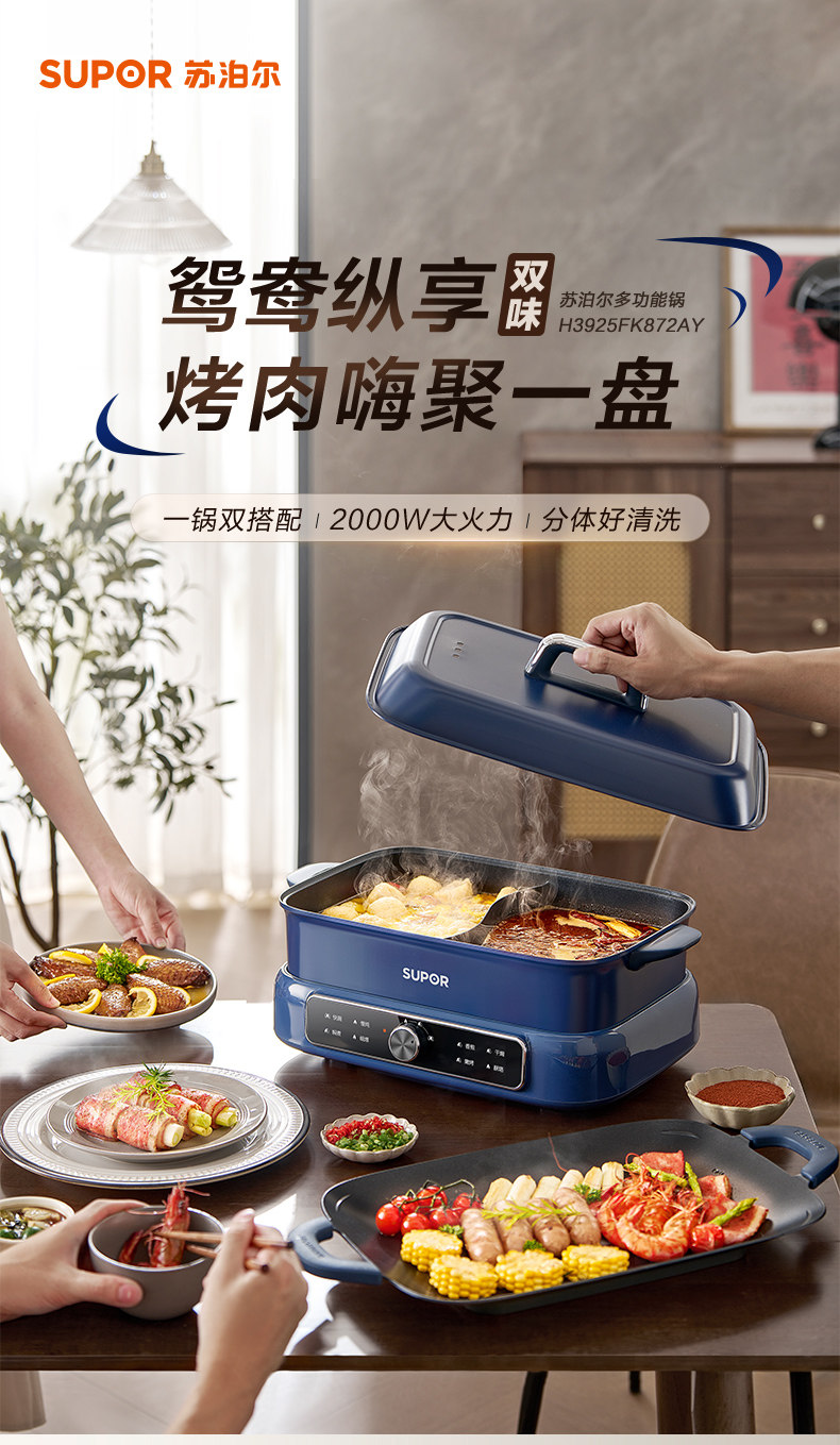 Supor Dual-Purpose Hot Pot for Home Use, 7L Large Capacity, Detachable Multi-Functional Steaming, Boiling, Stewing, and Stir-Frying Electric Hot Pot, Non-Stick Pan