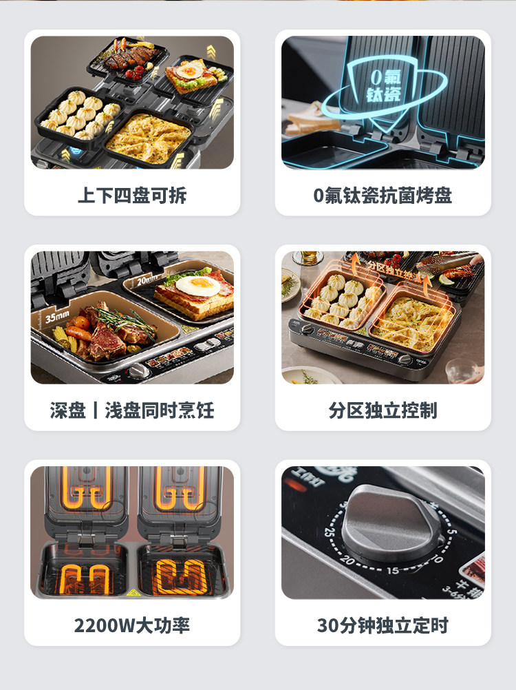 | Color Classification | 【Top and Bottom Removable & Washable】Four-Plate Integrated Hot Pot Electric Griddle + 0 Fluorine Titanium Ceramic Baking Pan,Liren - 30 Years of Focus on Quality Home Appliances |