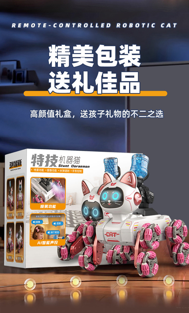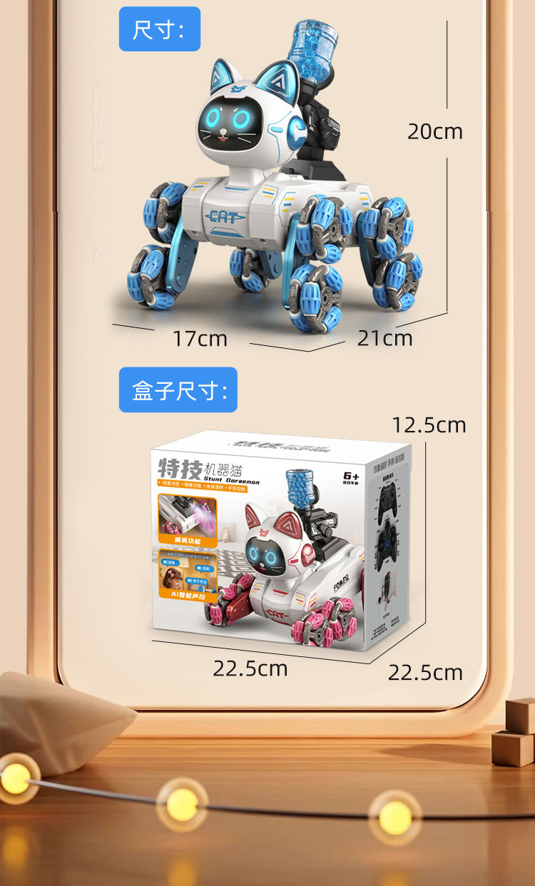 | Color Classification | Pink Upgraded Version - Eight-Wheel Pose Switching Doraemon [Interactive/Demo/Music] Handheld Remote Control,Pink Upgraded Version - Eight-Wheel Pose Switching Doraemon [Interactive/Demo/Music] Dual Control with Gamepad + Gesture Sensor Watch,Blue Upgraded Version - Eight-Wheel Pose Switching Doraemon [Interactive/Demo/Music] Handheld Remote Control,Blue Upgraded Version - Eight-Wheel Pose Switching Doraemon [Interactive/Demo/Music] Dual Control with Gamepad + Gesture Sensor Watch,Black Upgraded Eight-Wheel Pose Switching Robot Dog [Interactive/Demo/Music] - Handheld Remote Control,Black Upgraded Eight-Wheel Pose Switching Robot Dog [Interactive/Demo/Music] - Dual Control with Gamepad + Gesture Sensor Watch,Pink - Spray Version - Eight-Wheel Pose Switching Doraemon [Interactive/Demo/Music] Handheld Remote Control,Pink - Spray Version - Eight-Wheel Pose Switching Doraemon [Interactive/Demo/Music] Handheld Controller + Gesture Sensor Watch Dual Control,Blue - Spray Version - Eight-Wheel Pose Switching Doraemon [Interactive/Demo/Music] Handheld Remote Control,Blue - Spray Version - Eight-Wheel Pose Switching Doraemon [Interactive/Demo/Music] Handheld Controller + Gesture Sensor Watch Dual Control,Pink - Water Bomb Edition - Eight-Wheel Pose Switching Doraemon [Interactive/Demonstration/Music] Handheld Remote Control,Pink - Water Bomb Edition - Eight-Wheel Pose Switching Doraemon [Interactive/Demo/Music] Handheld Controller + Gesture Sensor Watch Dual Control,Blue - Water Bomb Edition - Eight-Wheel Pose Switching Doraemon [Interactive/Demonstration/Music] Handheld Remote Control,Blue - Water Bomb Edition - Eight-Wheel Pose Switching Doraemon [Interactive/Demo/Music] Handheld Controller + Gesture Sensor Watch Dual Control,Pink - Ai Voice Control - Eight-Wheel Pose Switching Doraemon [Interactive/Demonstration/Music] Handheld Remote Control,Pink - Ai Voice Control - Eight-Wheel Pose Switching Doraemon [Interactive/Demo/Music] Dual Control: Gamepad + Gesture Sensor Watch,Blue - Ai Voice Control - Eight-Wheel Pose Switching Doraemon [Interactive/Demonstration/Music] Handheld Remote Control,Blue - Ai Voice Control - Eight-Wheel Pose Switching Doraemon [Interactive/Demo/Music] Dual Control: Gamepad + Gesture Sensor Watch,Black-8K Remote Real-Time Reconnaissance Video and Photo Taking Robot Dog [Handle + Mobile Phone Dual Control],Black-8K Remote Real-Time Reconnaissance Video and Photo Taking Robot Dog [Handle + Mobile Phone + Watch Three Controls] |