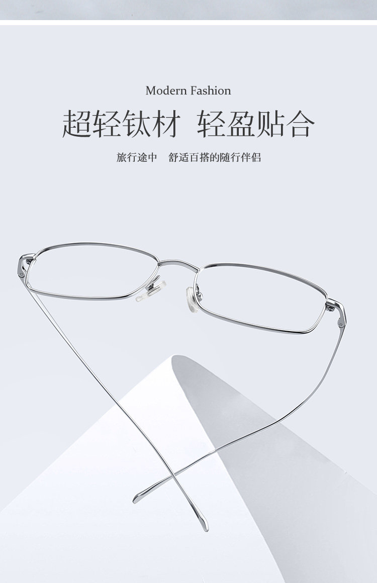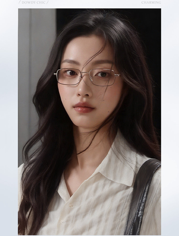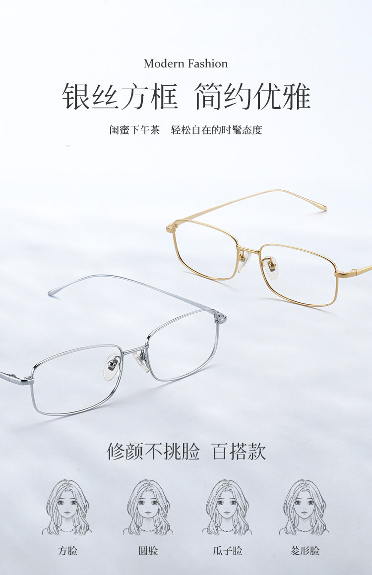 Ultra-Light Pure Titanium Square Frame Glasses for Myopia, Customizable Prescription, Women's Silver High-Tech Cool Feeling Blue Light Blocking Eyeglass Frames