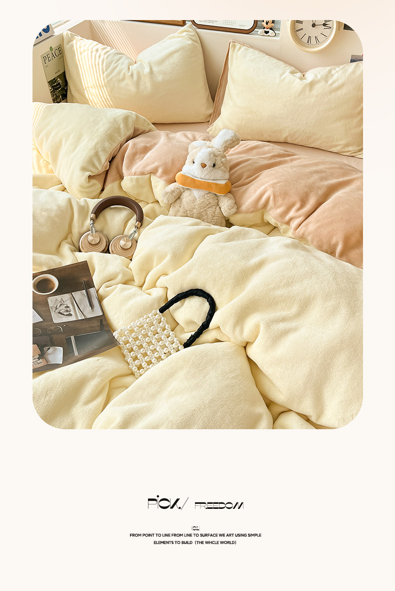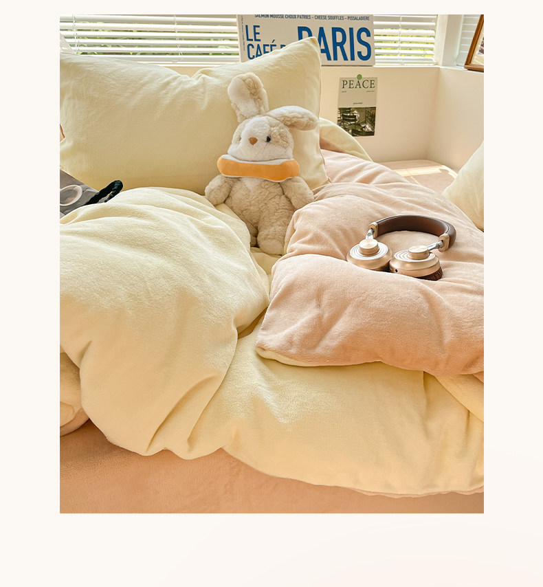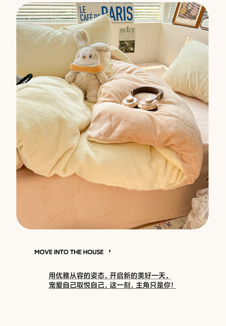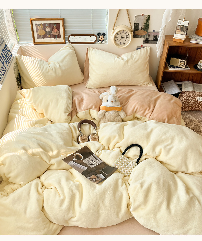 Winter Solid Color Milk Velvet Four-Piece Set, Thickened and Fleece-Lined Duvet Cover, Bed Sheet, Fitted Sheet, Quilt Cover, Student Dormitory Three-Piece Set